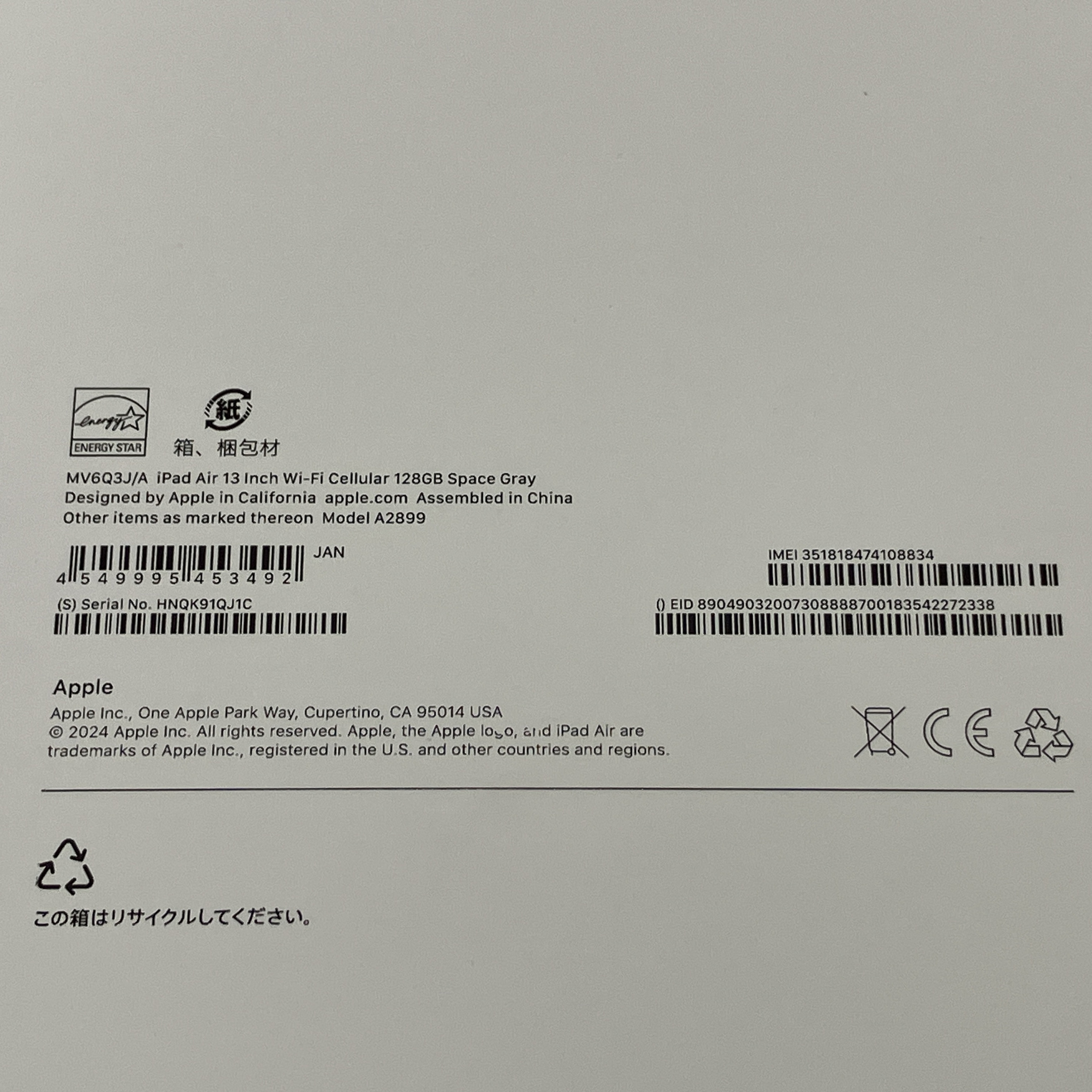 | 製造日 | 2024.4 | 最初の使用 | 2024.6 |