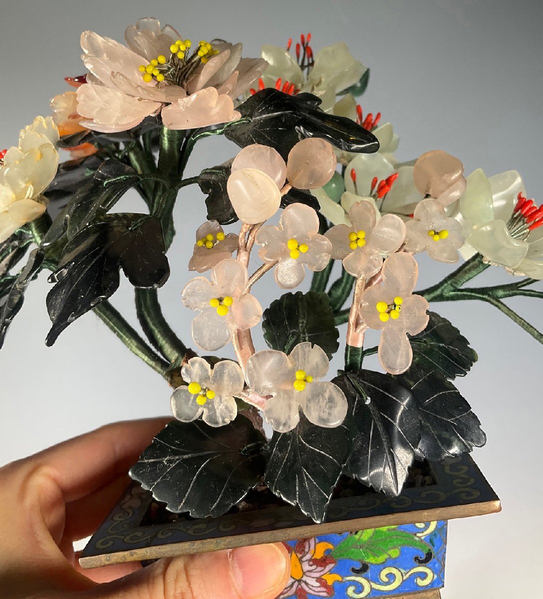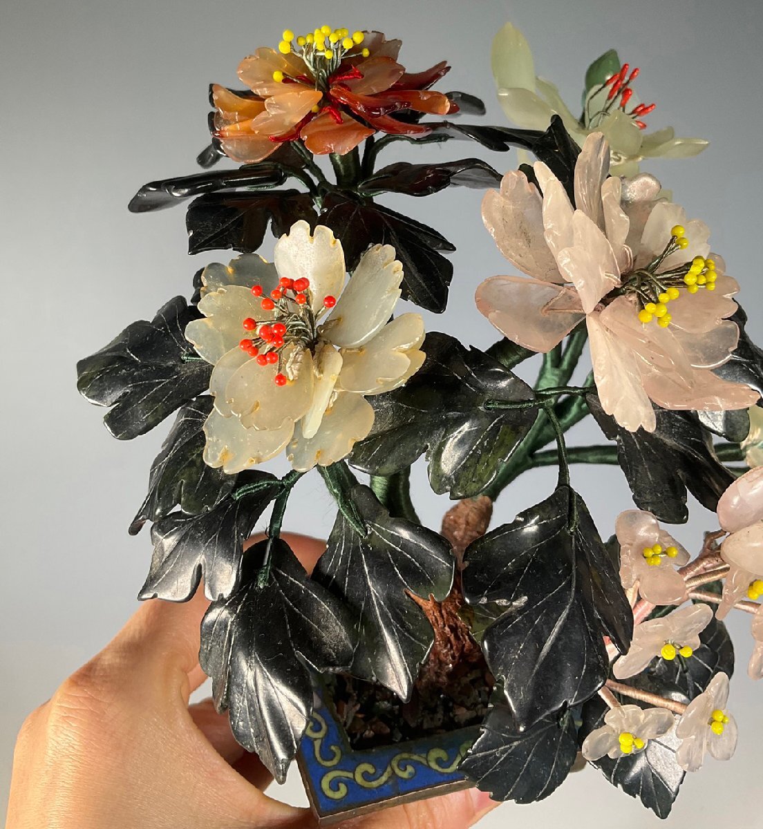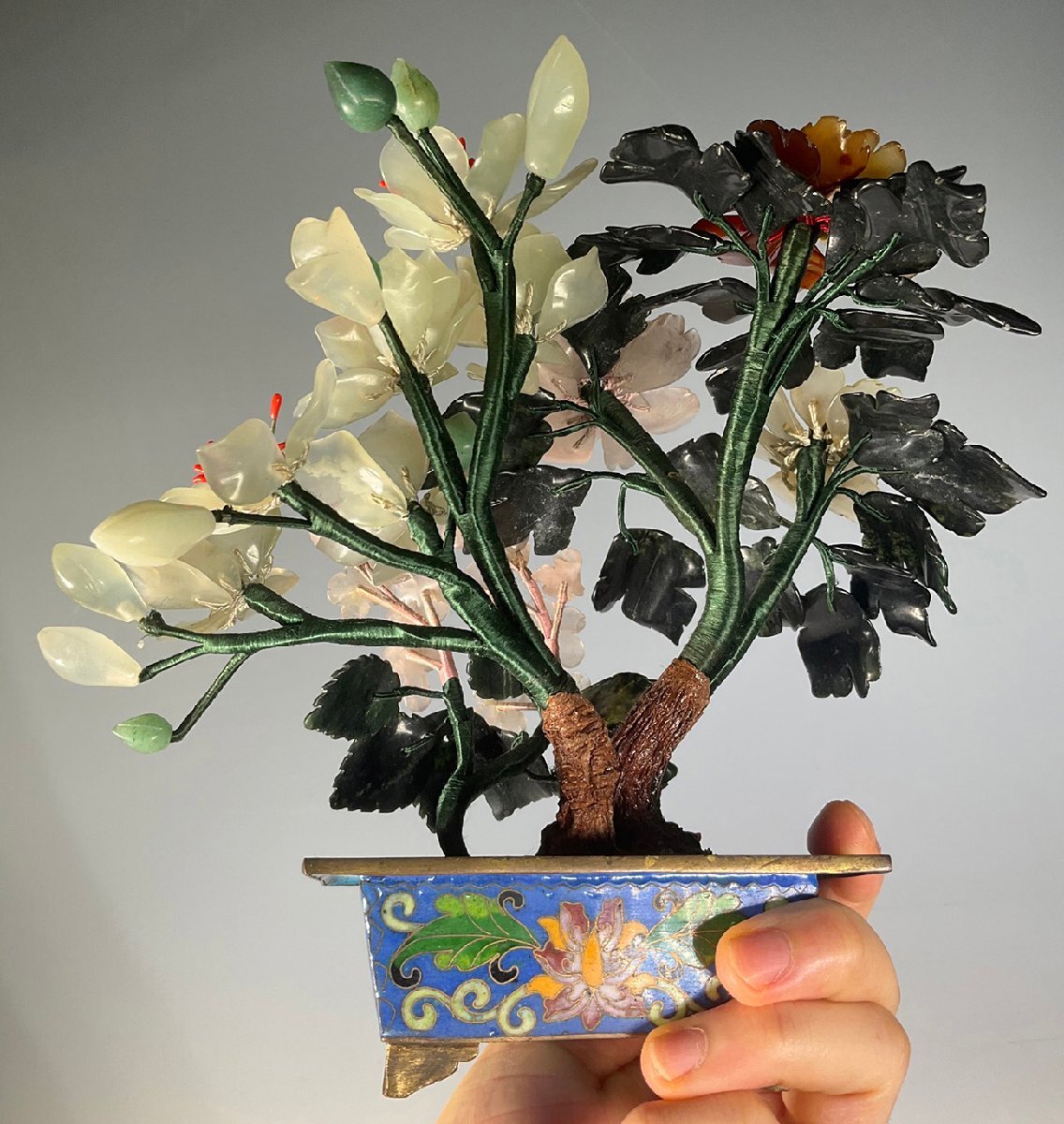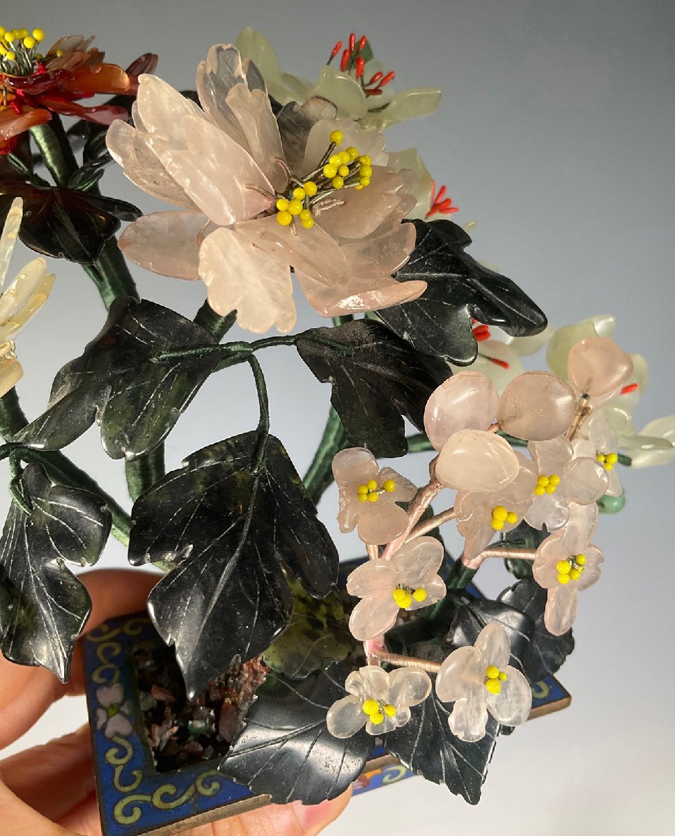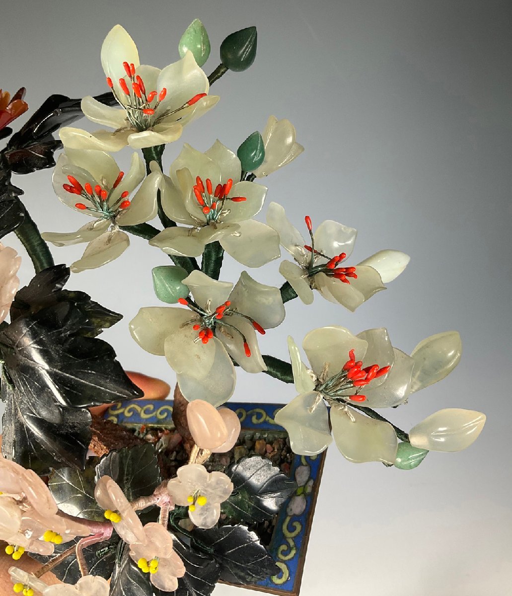 【安】17-18世紀 銅胎 景泰藍 嵌め玉石 玉堂富貴盆景 極細工 古置物 古擺件 中国古美術 時代物 古董品 209 サイズ(約寸) |