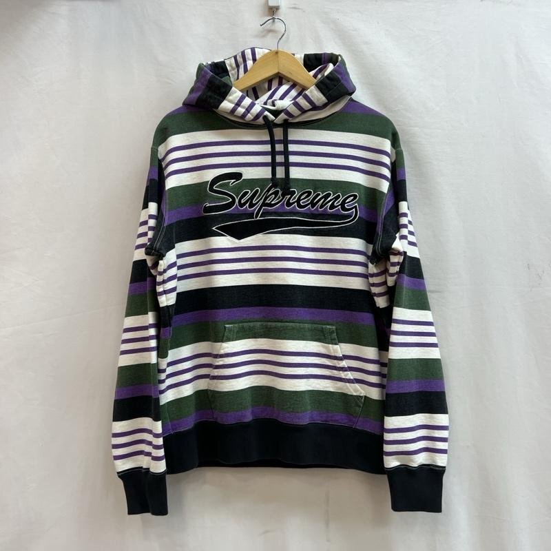 シュプリーム 18ss Striped Hooded Sweatshirt スクリプトロゴ マルチストライプ パーカー S