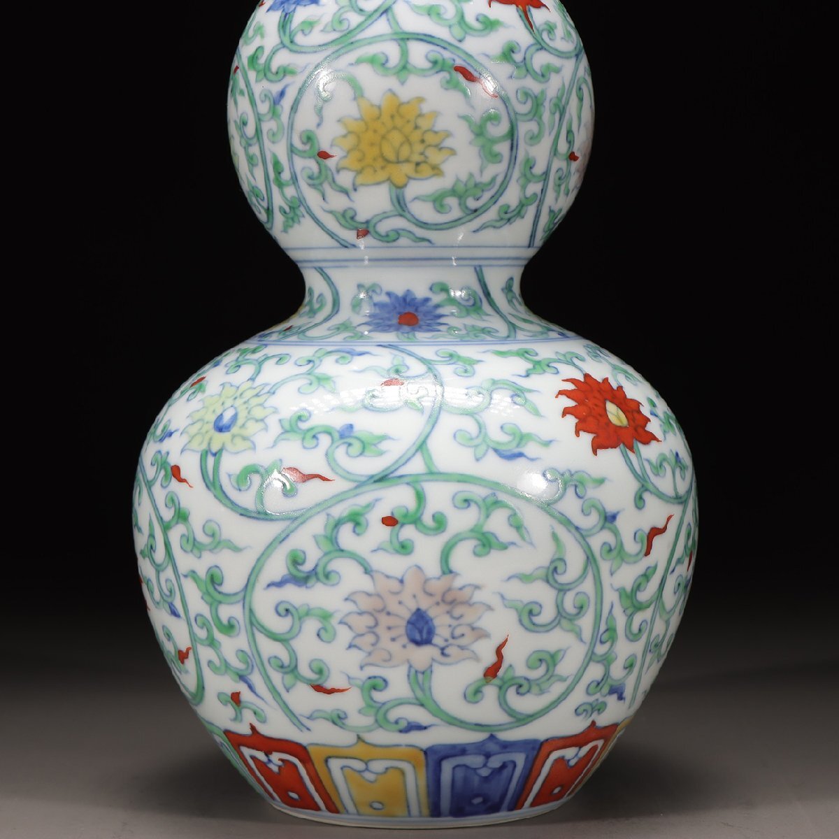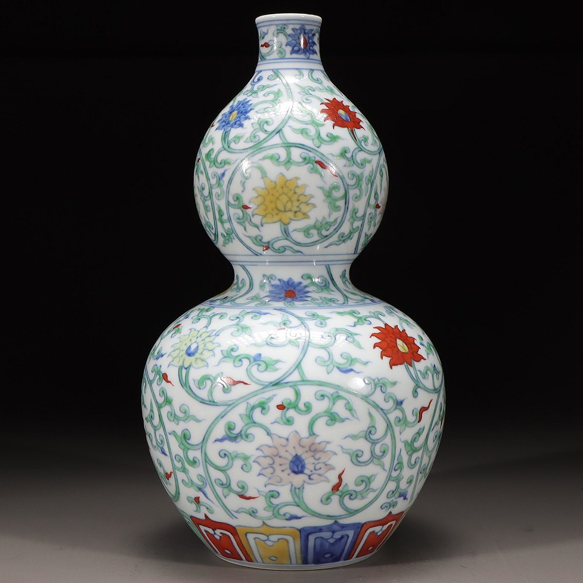 | ◇商品名◇ | ■大成美術■斗彩纏枝花卉紋瓢箪瓶 明成化年製款 箱付き(検)明時代 陶磁器 唐物 中国美術 骨董 古玩 244 | ||