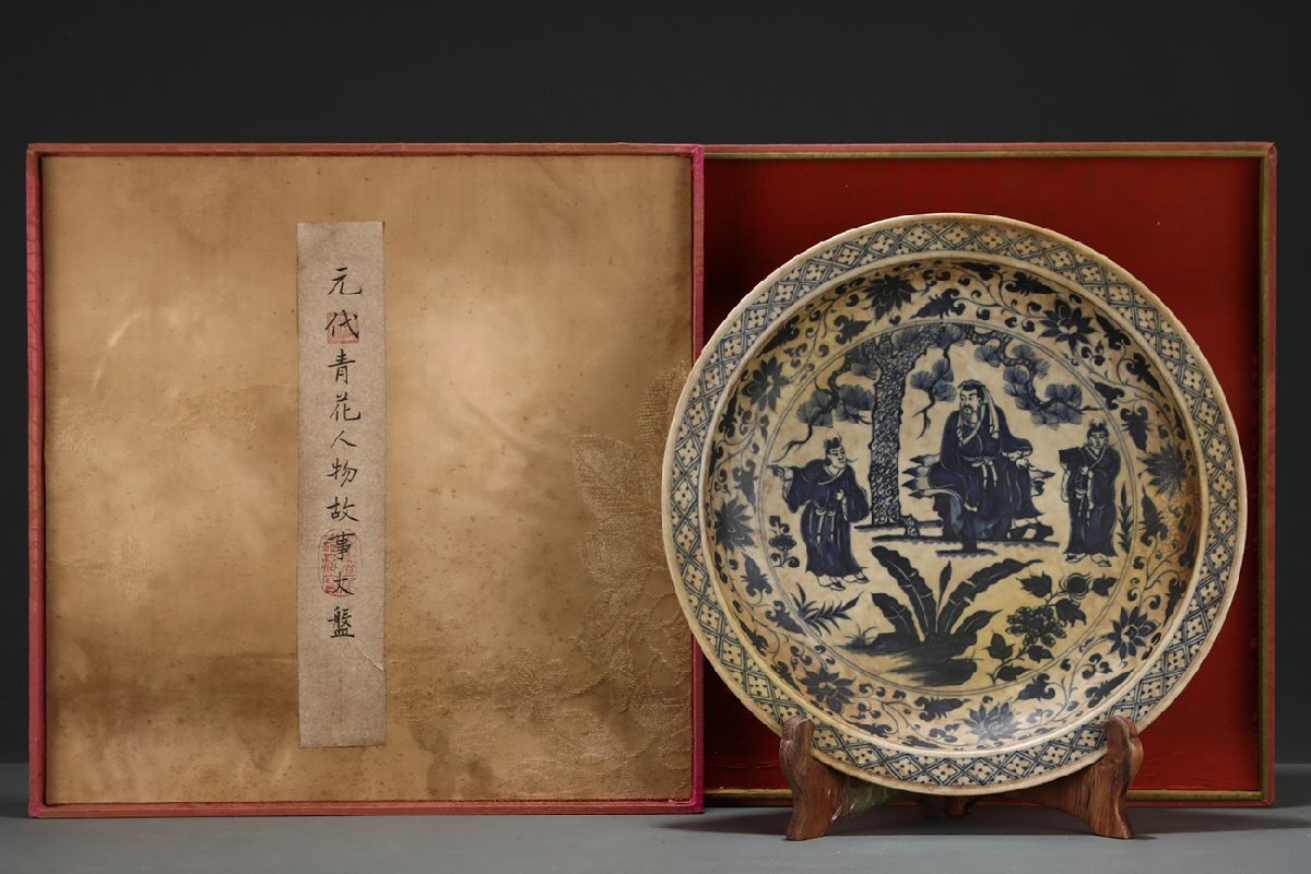 | ◇商品名◇ | ■大成美術■青花人物故事紋盤 箱付き(検) 元時代 染付 陶磁器 唐物 中国美術 骨董 古玩 275 | ||