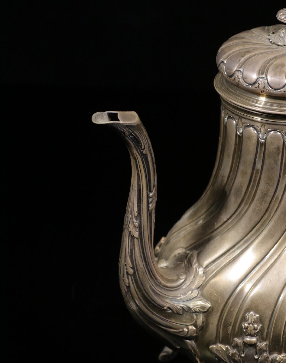 【安】フランス 1875年 (Fray Fils)製 銀製 コーヒー用具 茶壺 酒壷 茶道具 極細工 古美術 古董品 240 サイズ(約寸) |