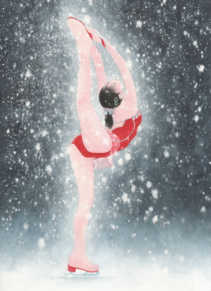 舞華 手描き水彩複製画 #252 サイレント・イヴ フィギュアスケート レオタード Xmas