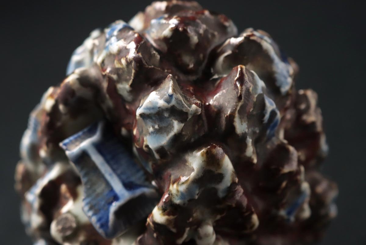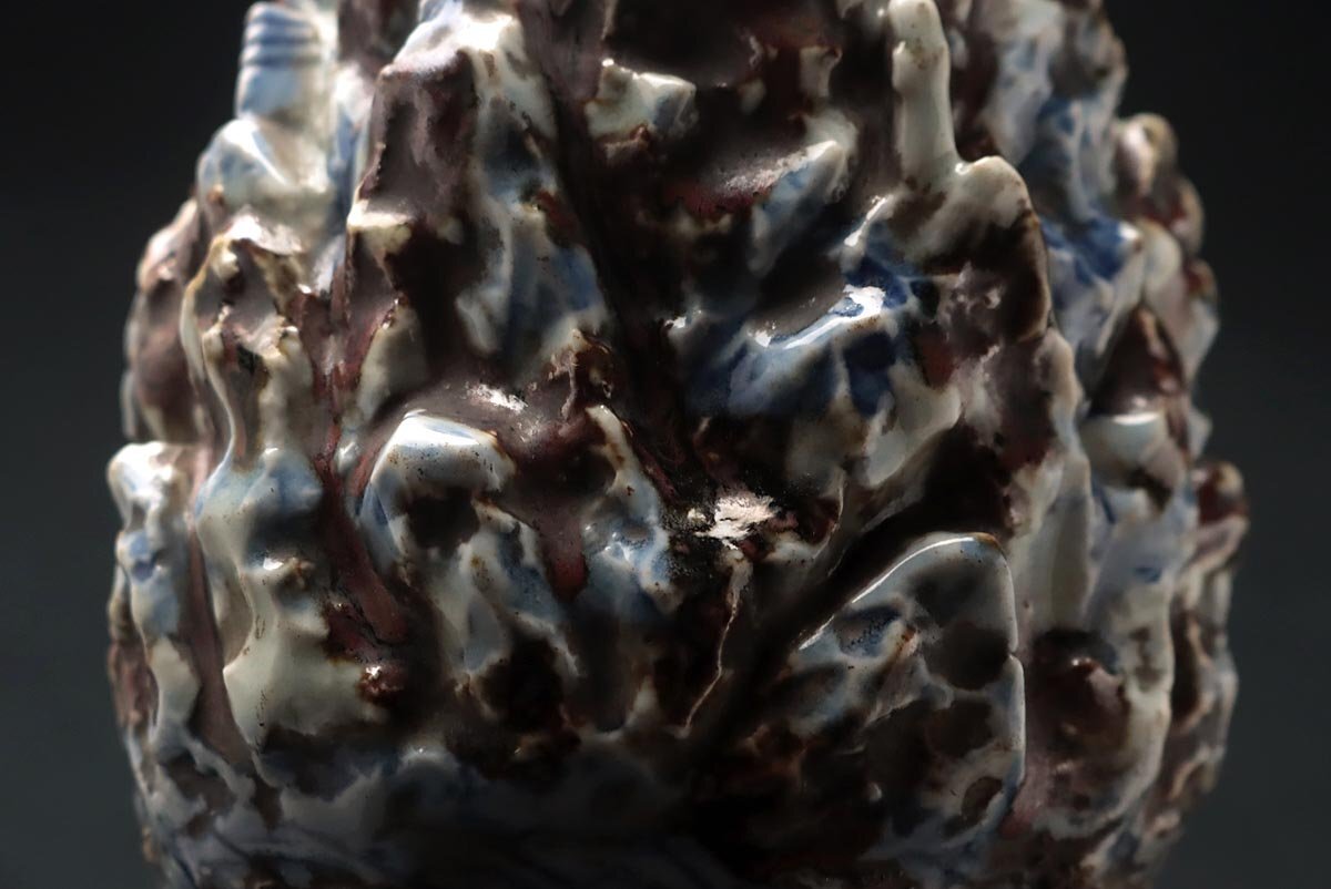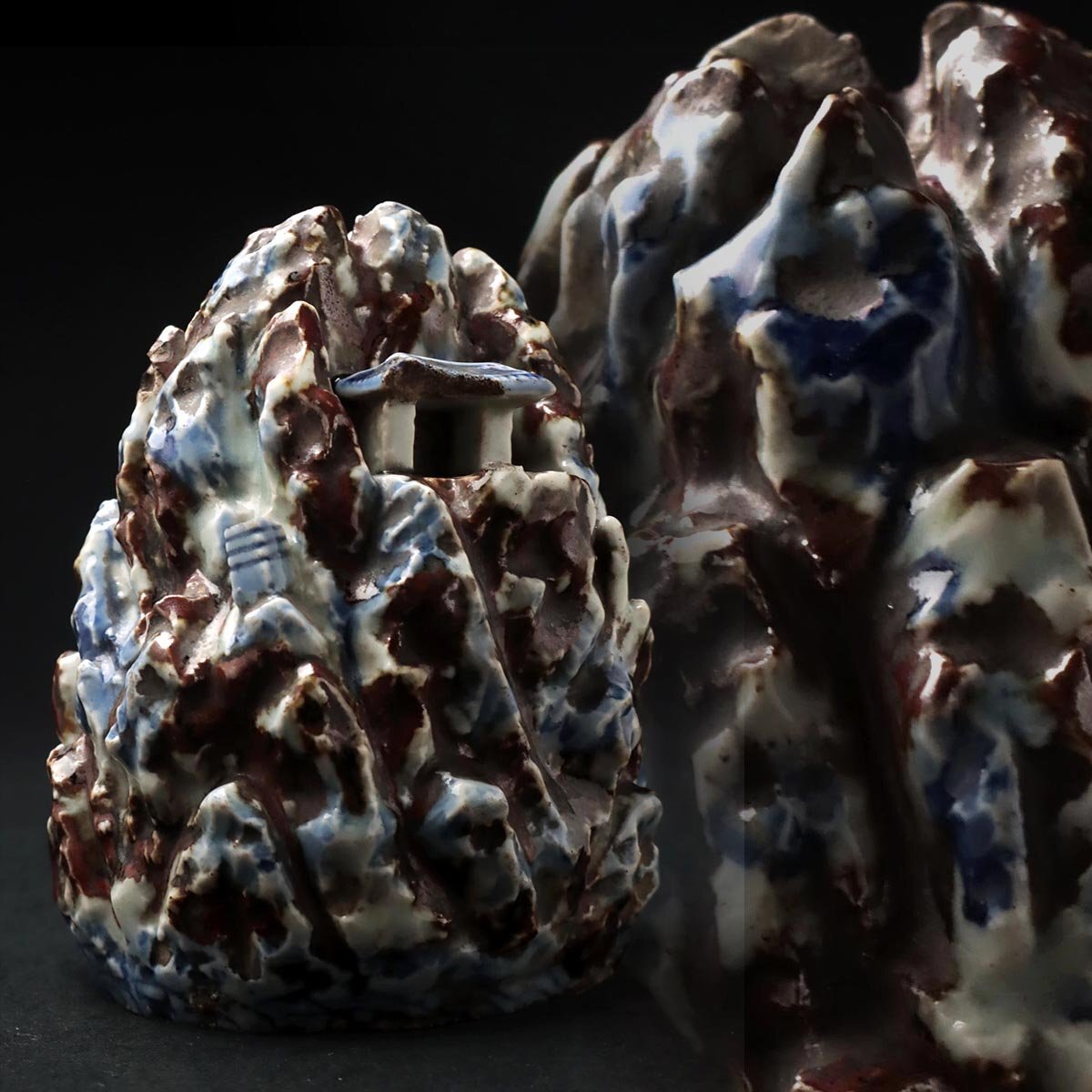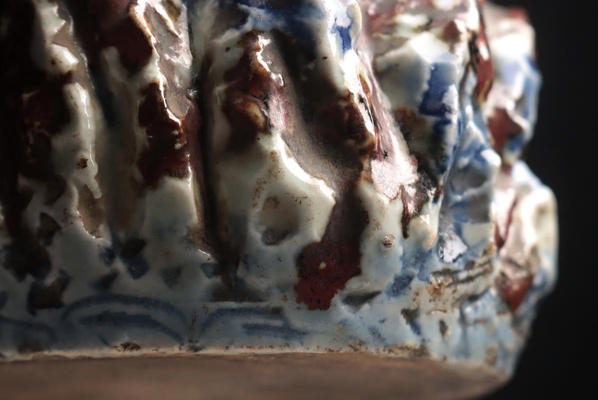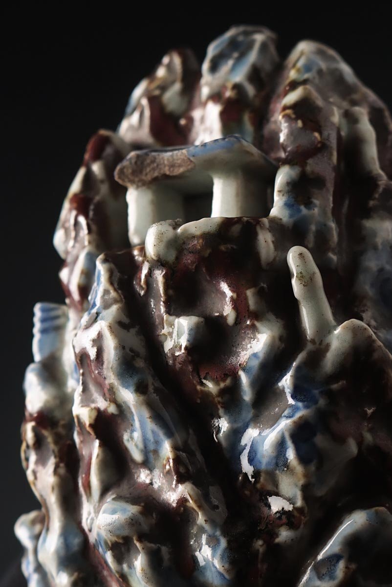 | ◆ 朝鮮古美術 李朝 辰砂 青花白磁 山中楼閣盛上 金剛山水滴 高13.2cm 重910g 木箱附・辰砂 鉄砂 染付 朝鮮 中後期 朝鮮古陶 ◆