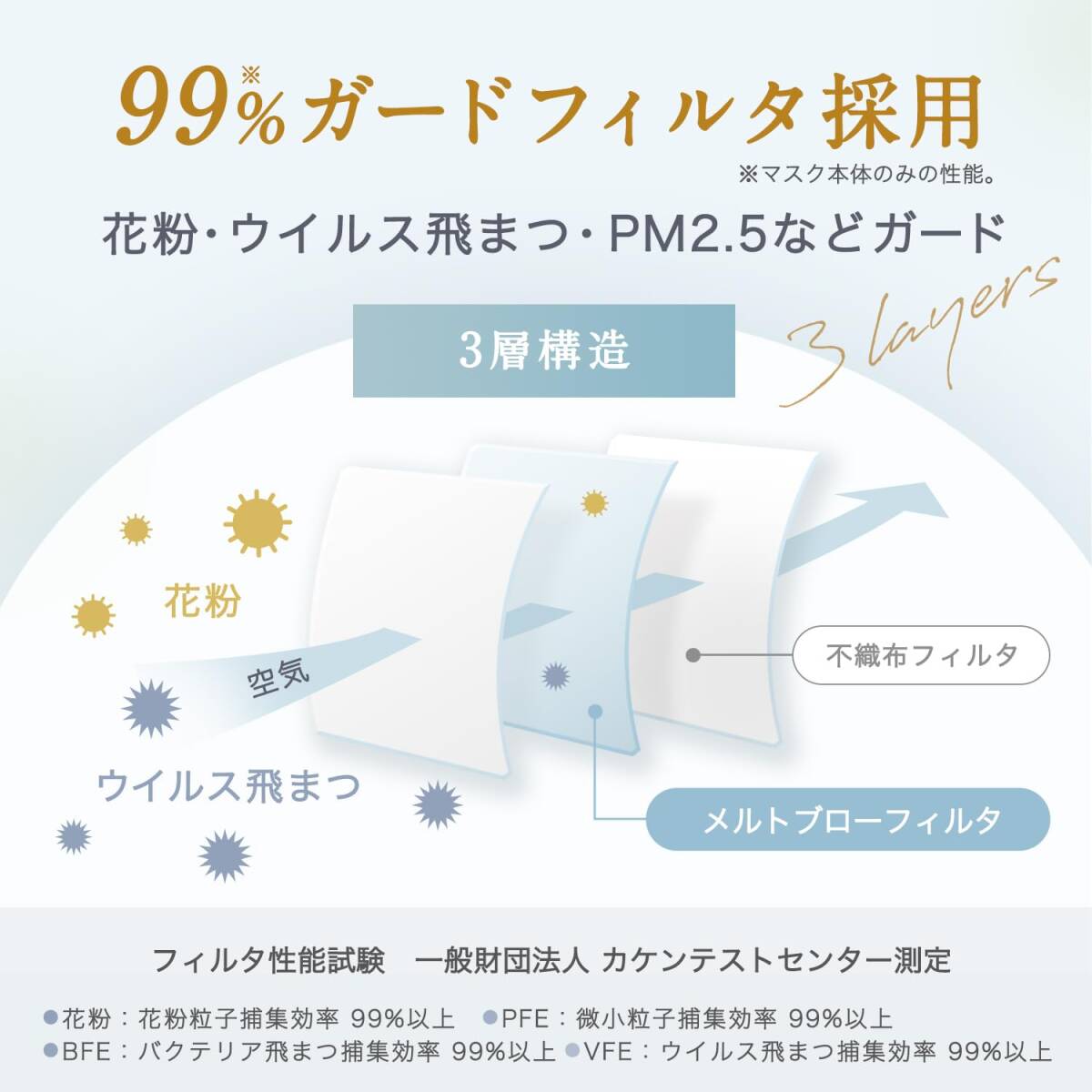 花粉・ウイルス飛沫・PM2.5などをしっかりガードする3層の高機能フィルタを採用。