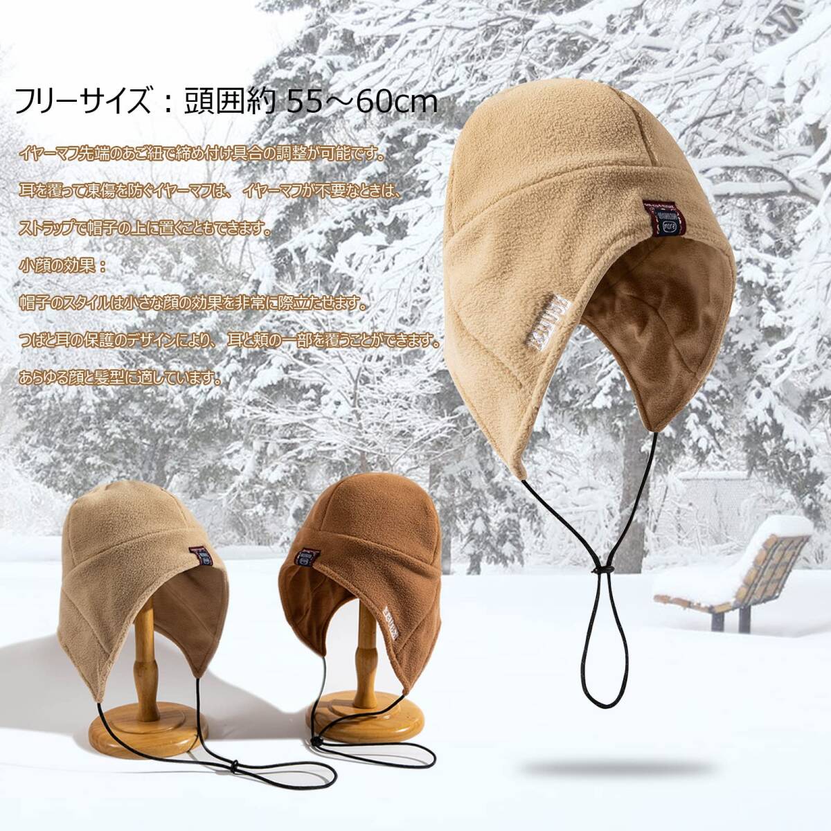 フリーサイズ:頭囲約55〜60cmに対応、イヤーマフ先端のあご紐で締め付け具合の調整が可能です。 耳を覆って凍傷を防ぐイヤーマフは、イヤーマフが不要なときは、ストラップで帽子の上に置くこともできます。