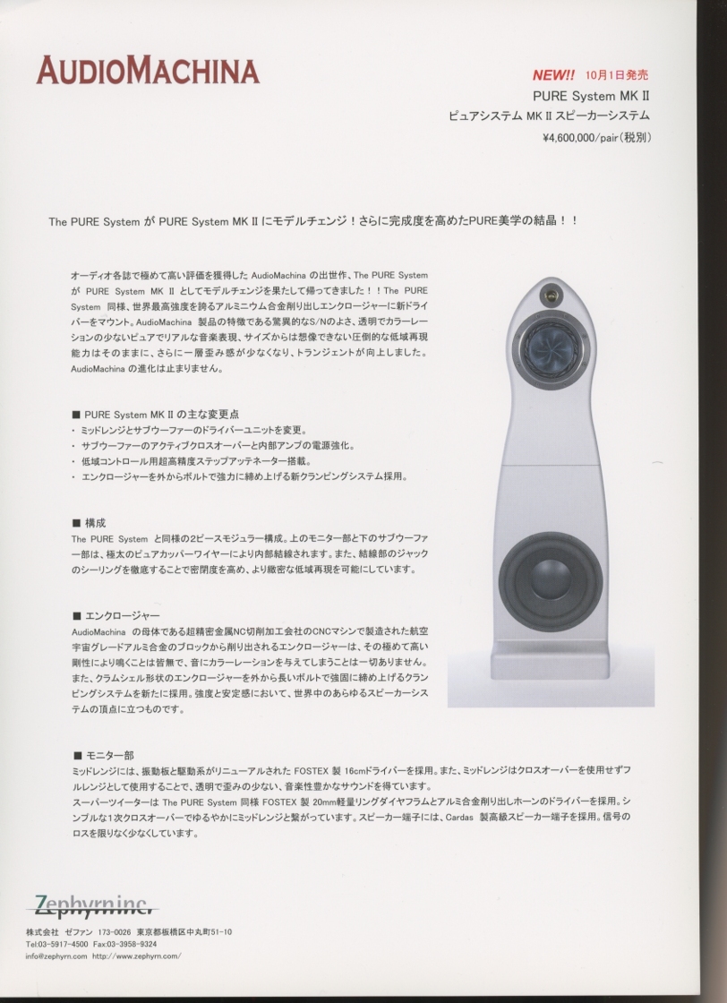 AudioMachina PURE System mkIIのカタログ オーディオマシーナ 管6459