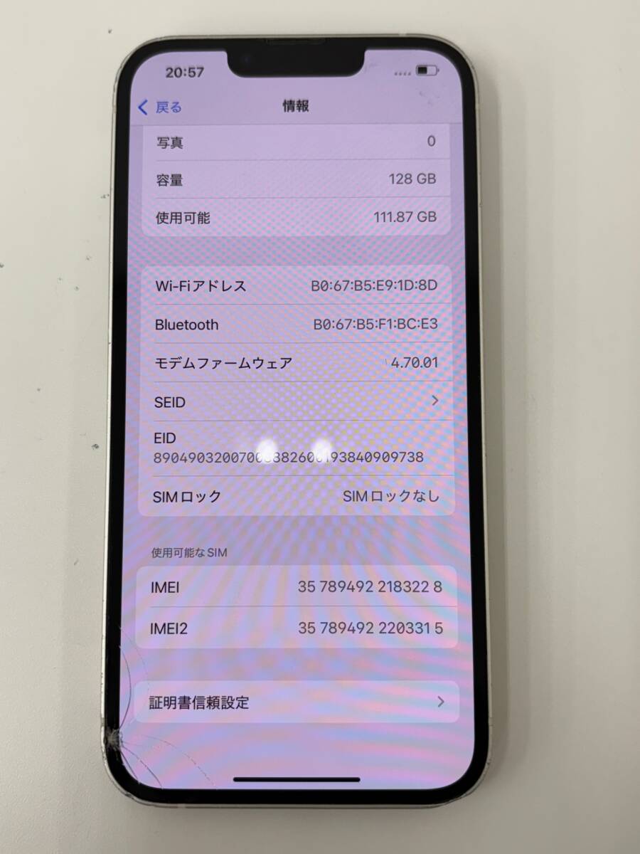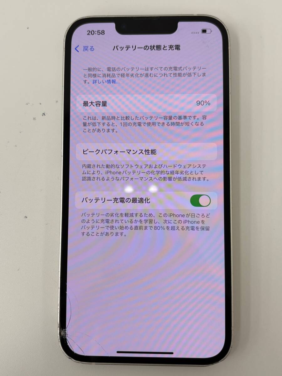 | 商品名 | iPhone13 ホワイト 128GB SIMフリー 判定- バッテリー90% キズあり |