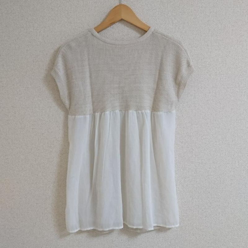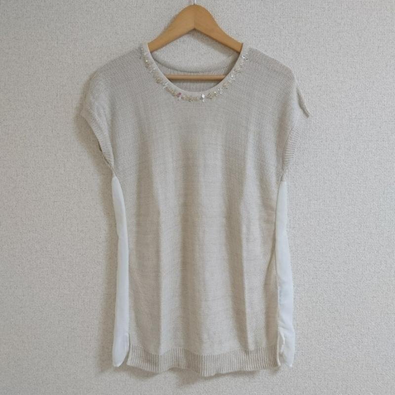 PEYTONPLACE M ペイトンプレイス カットソー 半袖 素材切り替え ニット ビジュー Cut and Sewn 10036682