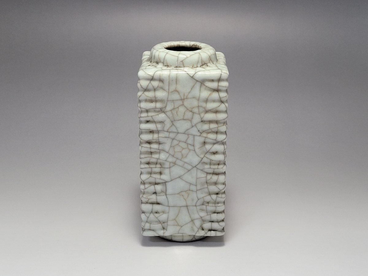G 青磁 貫入 四角花瓶 時代唐物 高さ約13.7cm / 宋元時代 花瓶 飾瓶 花插 花器 唐物 人間国宝 李朝 高麗 古玩 古董