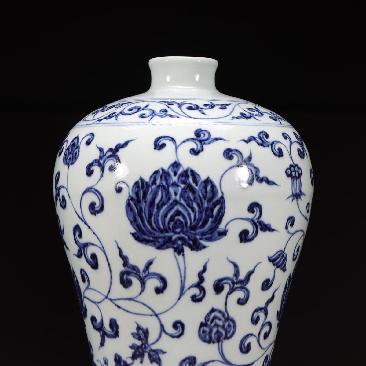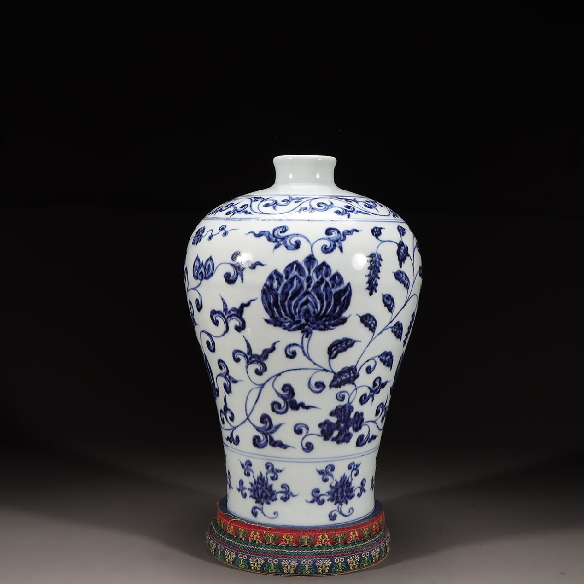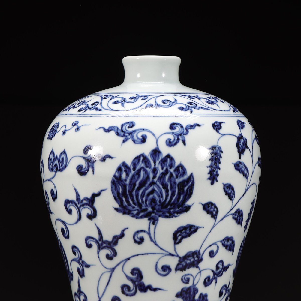 【安】明時代 大明永楽年製 青花纏枝花卉紋梅瓶 共箱 唐瓷 染付 古陶瓷 中国古美術 古董品 243 サイズ(約寸) |
