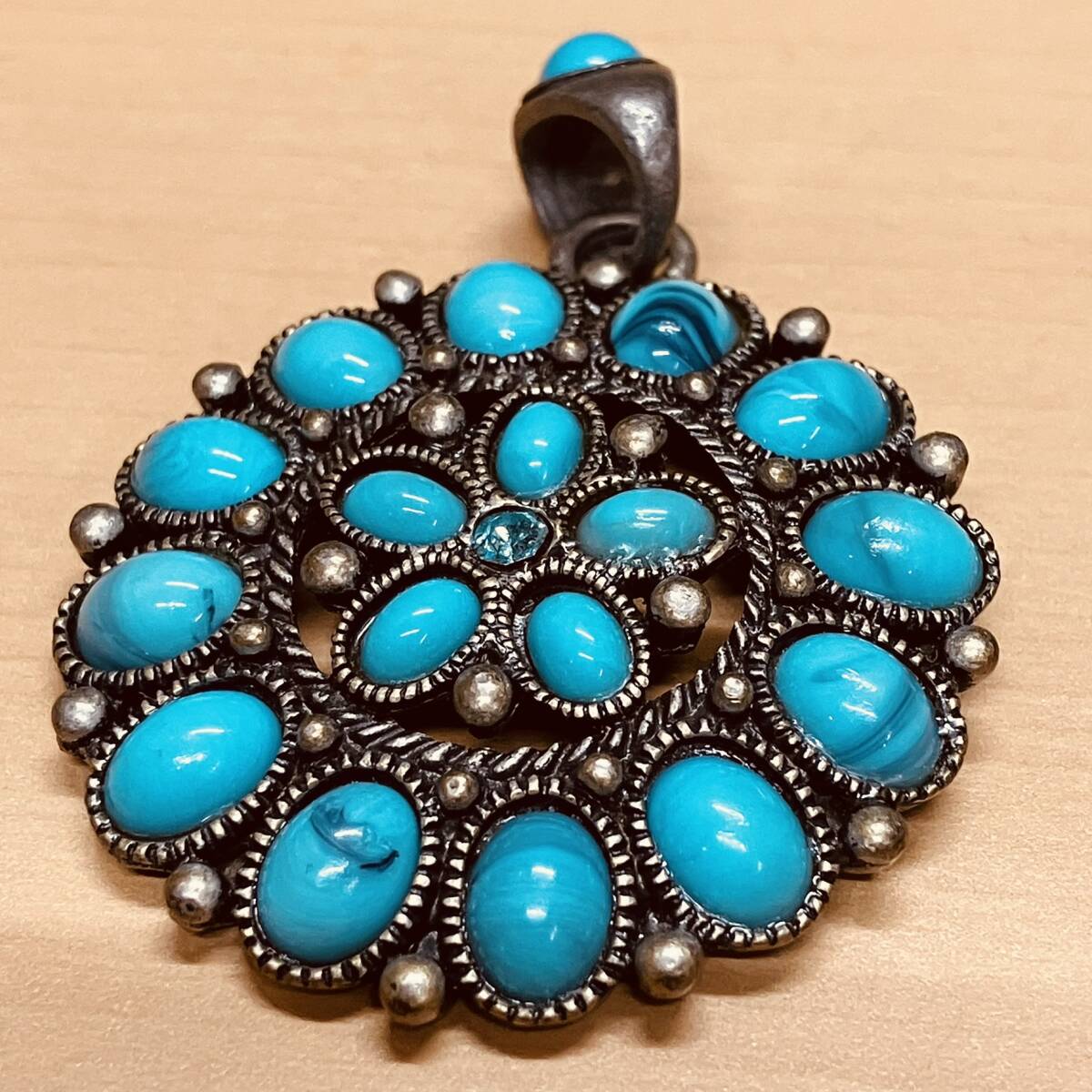 ターコイズとシルバーのように見えますが、詳しくないのでわかりません。