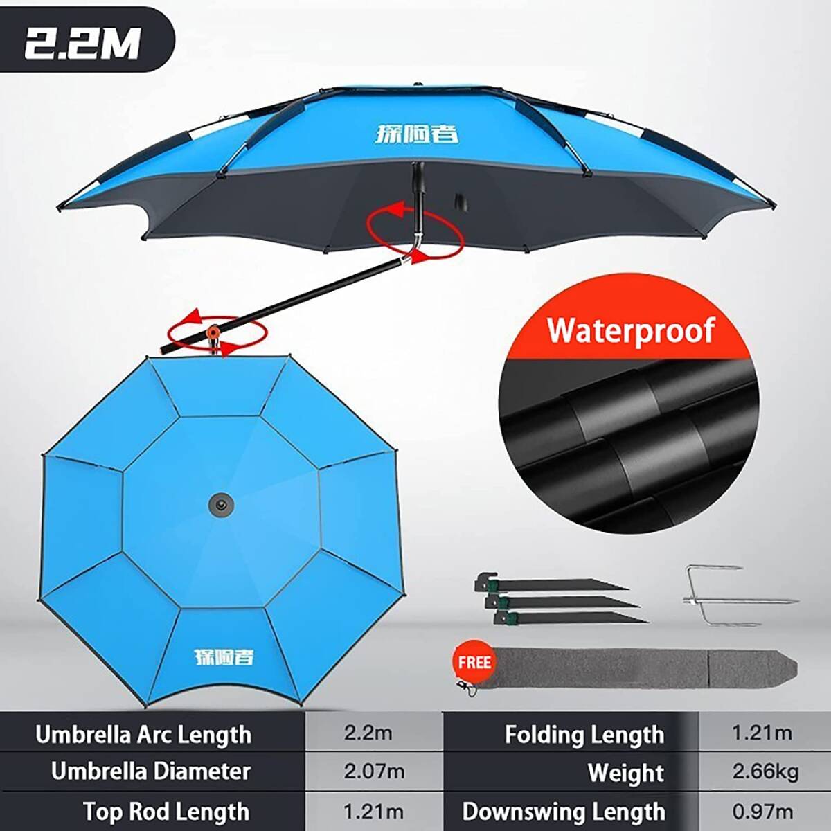 720°ユニバーサル回転:360°スプリング + 360°調整レバー。傘の高さは調整可能です。夏の楽しみと安心釣りのためのポータブル折りたたみ式パラソル。