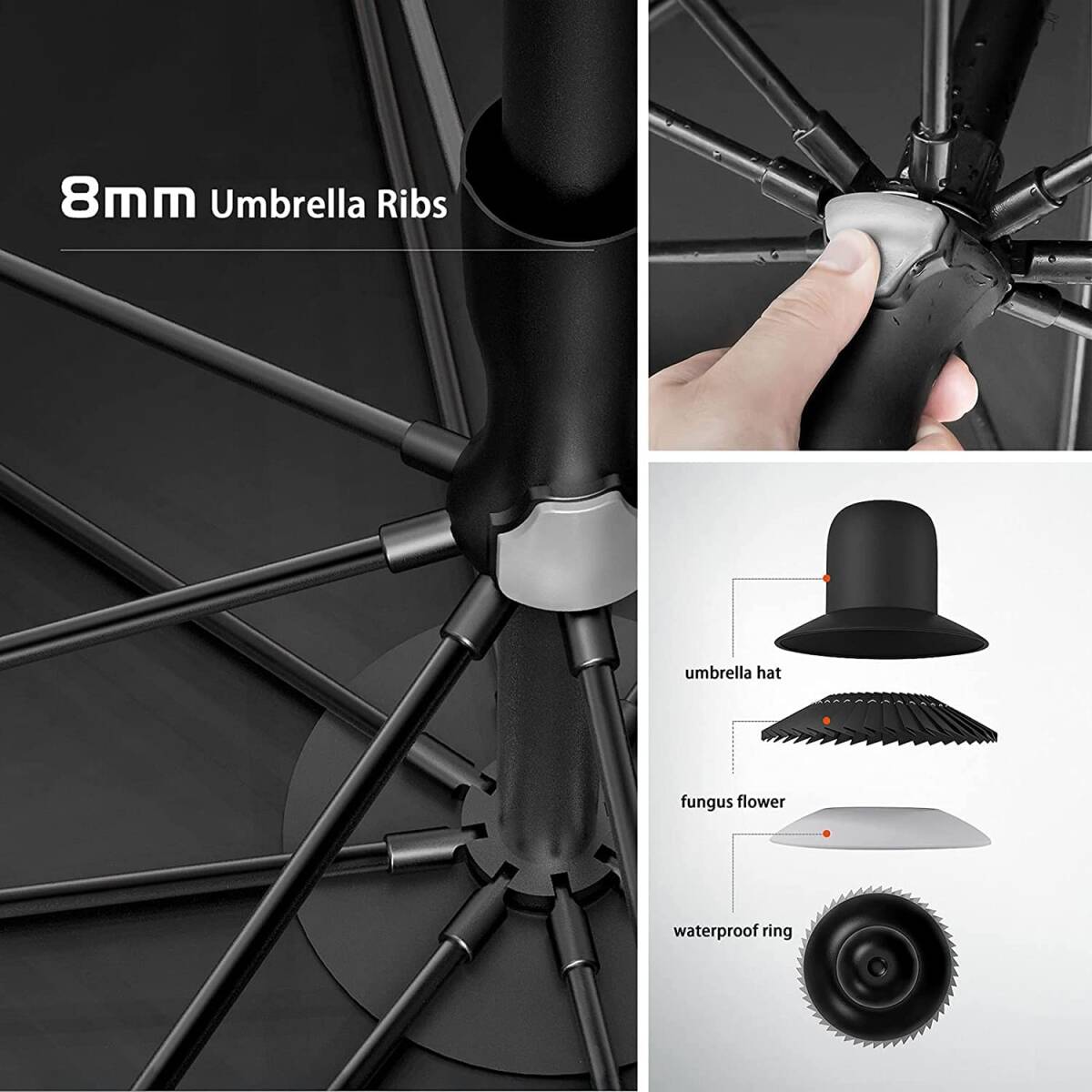 アルミニウム合金傘ポール:アウターチューブ25mm、工業用グレードの材料、100kg、強風抵抗、強くて耐久性があります。二重層の傘のスケルトン、16個のガラス繊維傘のrib骨、厚く、良好なタフネス、曲げ抵抗、壊れやすい、風の抵抗。