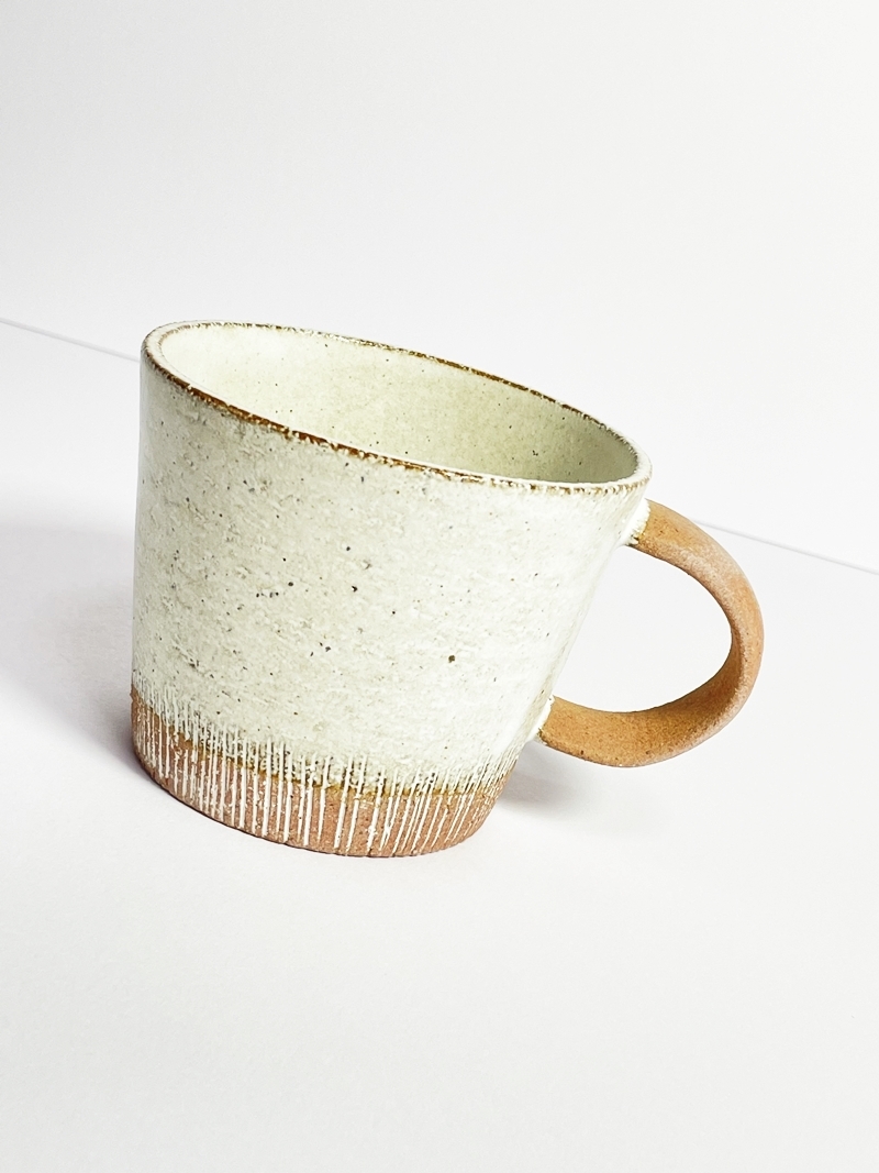 美濃焼のおしゃれでかわいいマグカップです。 大きめなのでスープカップとしてもお使い頂けます。 珈琲、コーンスープなどを入れてほっと一息、いかがでしょうか。 持ち手は素朴なナチュラル仕上げ。 珈琲を飲むのが楽しくなりそうなマグカップです。 ~注意点~ ・持ち手の部分は素焼き仕上げの為、石などが混じり、黒色等の点々が見られる場合があります。 ・陶器の裏面は、多少ざらざらとしている為、テーブルなどでは擦り傷等にご注意ください。 ・焼き具合などによって1点1点、形や色味などが多少異なります。 ご理解のほどお願いいたします。 | |||
