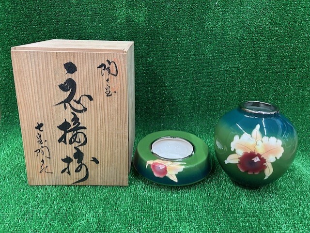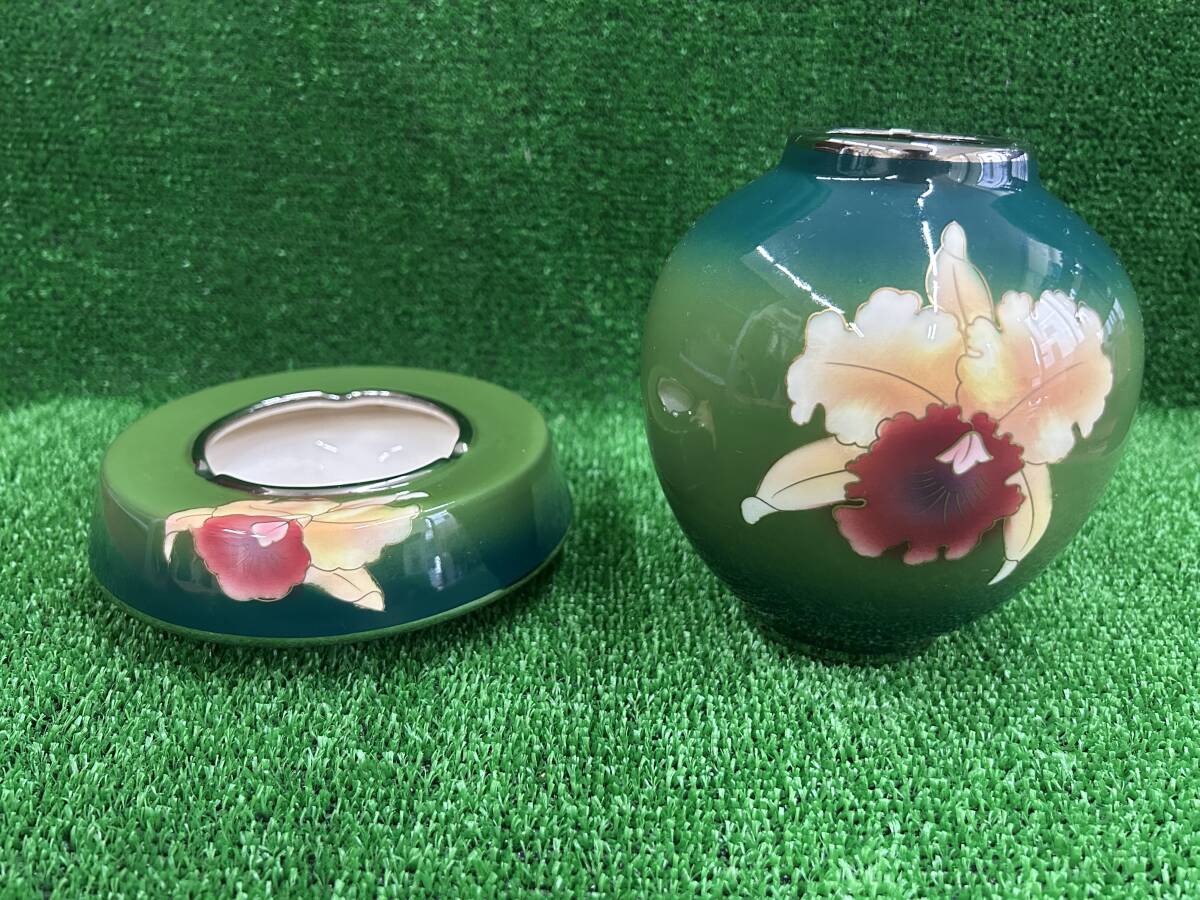 ■富士七宝特選陶器 応接揃 花瓶 灰皿 陶器 花柄 共箱付き 中古 です。