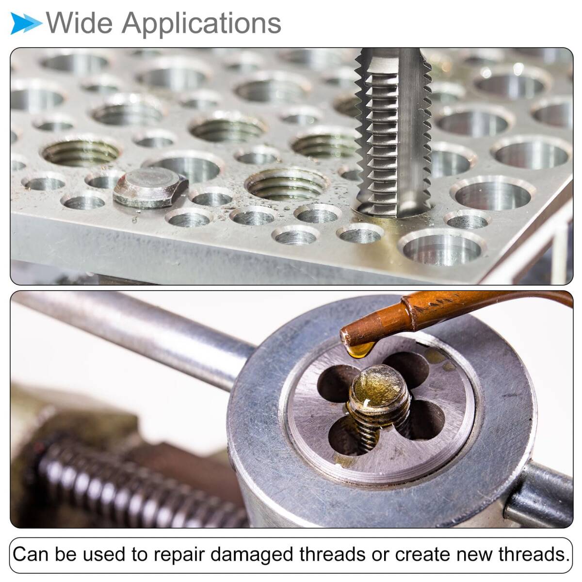 ★ 汎用 --- ステンレス鋼、アルミニウム合金、鋳鉄、銅、鉄、アルミニウム、プラスチックに損傷したねじを修復したり、新しいねじを作ったりします。ねじタップは、ナット、ねじインサート、配管、バルブのねじのような貫通孔または浅いブラインド孔のメスねじをタップするために使用され、丸型は、ロッドまたはバー、ボルトまたはスタッドのオスねじを加工、修正または洗浄できます。