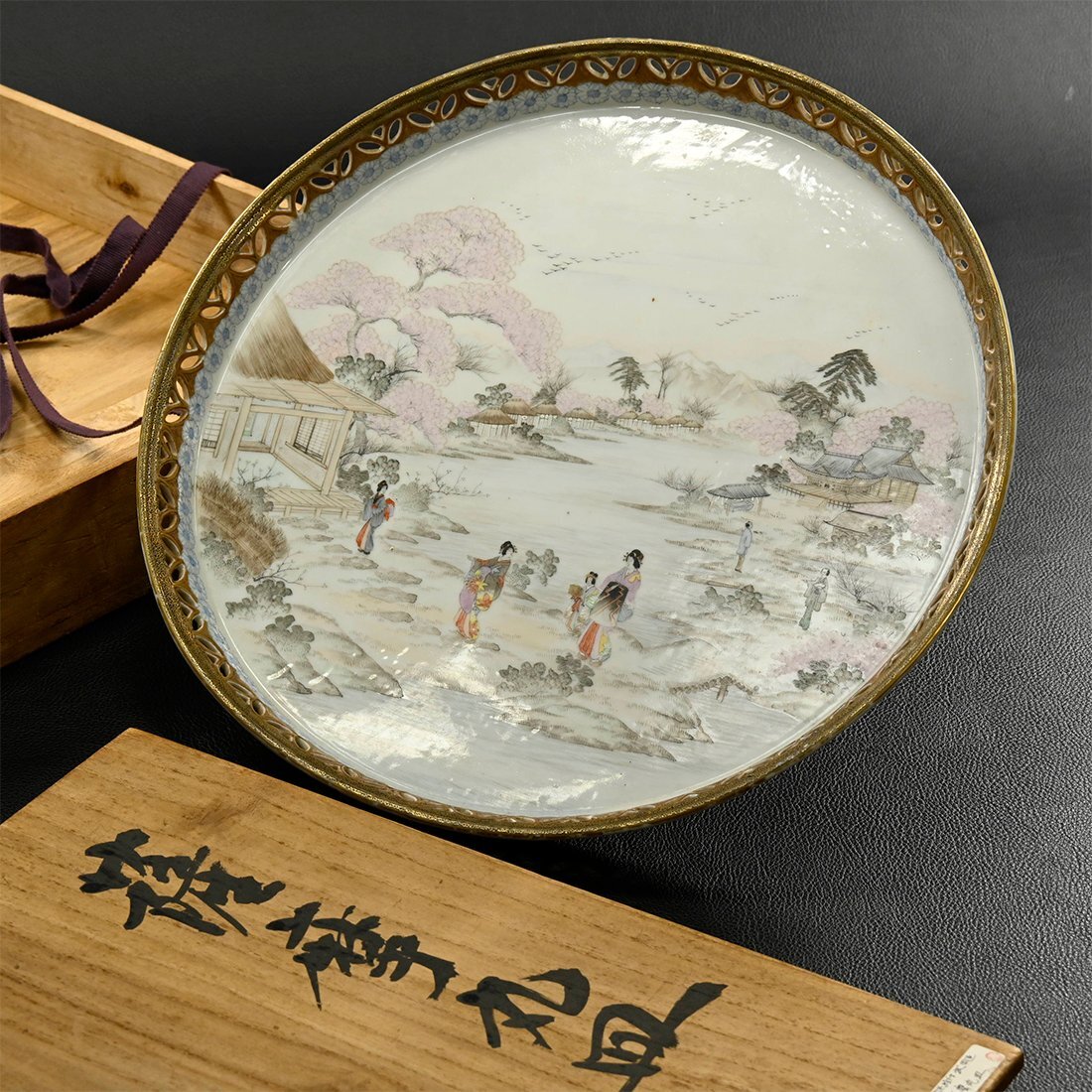 【永】d274【兵庫県の図書館や博物館の館長を歴任された歴史研究家遺族委託品】明治時代頃 横浜薩摩焼色絵武田製 美人桜図大皿 優品