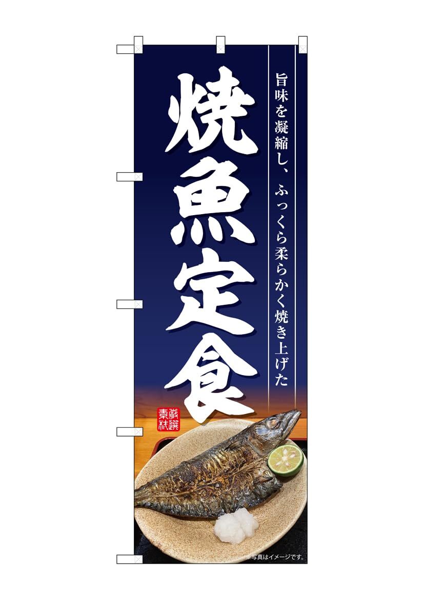 のぼり屋工房(Noboriyakobo) SNB-6413 焼魚定食 開き 紺地 W600×H1800mm 1 枚 三方三巻 ポンジ 商売繁盛