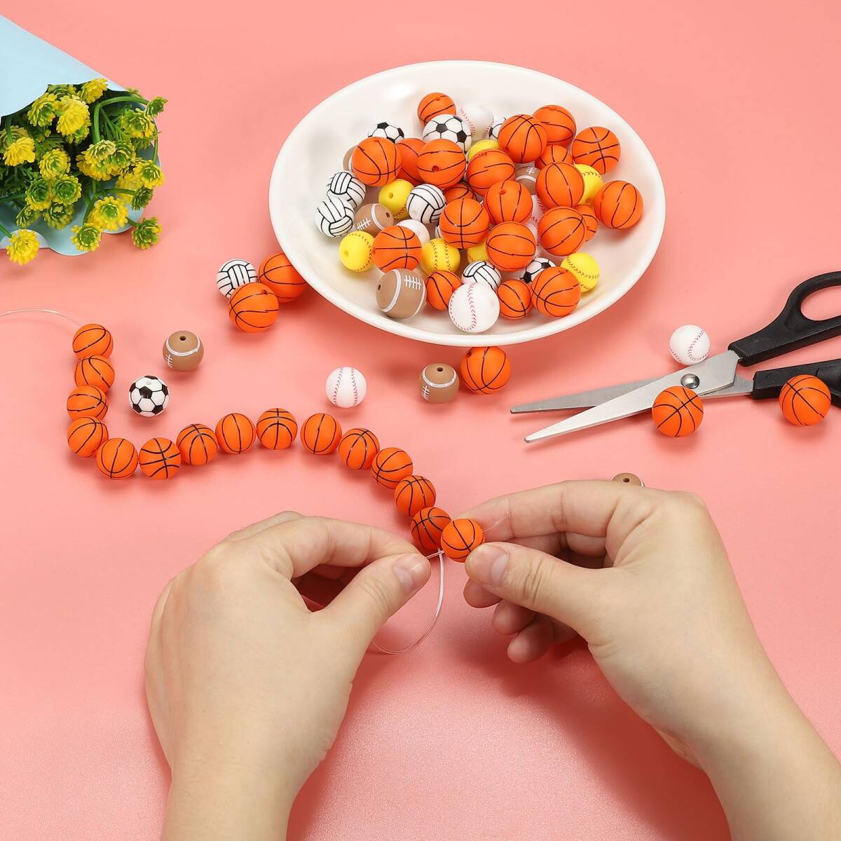 特徴:1. スポーツビーズはシリコン素材で作られており、良い弾力性と快適なグリ ップを持ち、破損、変形、色あせしにくいです。耐摩耗性、耐久性、高温にも耐えることができます。安定して信頼性があり、再利用可能で耐久性があります。2. シリコンスポーツボールビーズはクラシックなスポーツ要素を持ち、さまざまなカラフルで魅力的な色で提供されており、かわいく楽しいです。お洋服と一緒にスポーツアクセサリーを作るのに最適です。