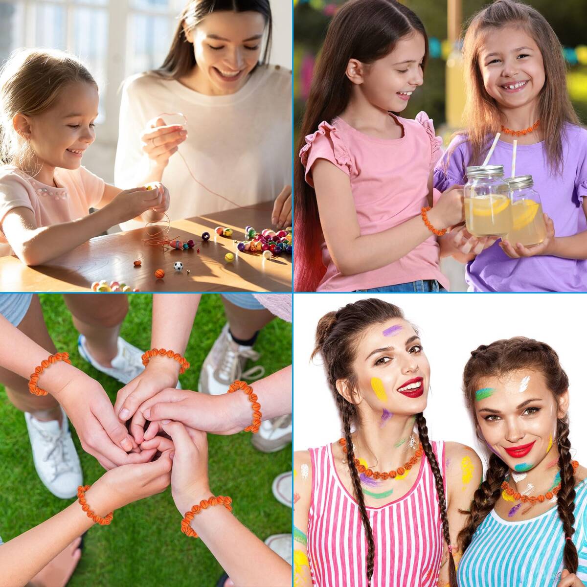 用途:シリコンスポーツボールビーズは特にスポーツ愛好家に適しています。ネックレス、イヤリング、ブレスレット、リストバンド、キーリング、ペンダント、バックパックの装飾品、衣類のアクセサリー、宝石、ビーズカーテンなどを作るために使用できます。簡単でありながらファッショナブルです。さまざまな面白い手芸品を作ることができ、家族や友人への贈り物としても良い選択です。