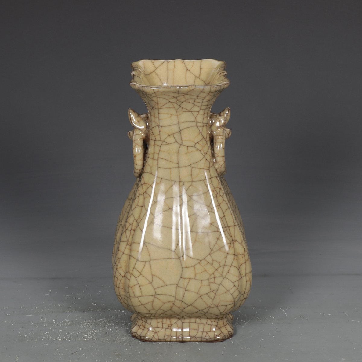 【安】南宋時代 哥窯米黄釉獣耳瓶 共箱 唐瓷 染付 古陶瓷 古美味 中国古美術 古董品 224 サイズ(約寸) |