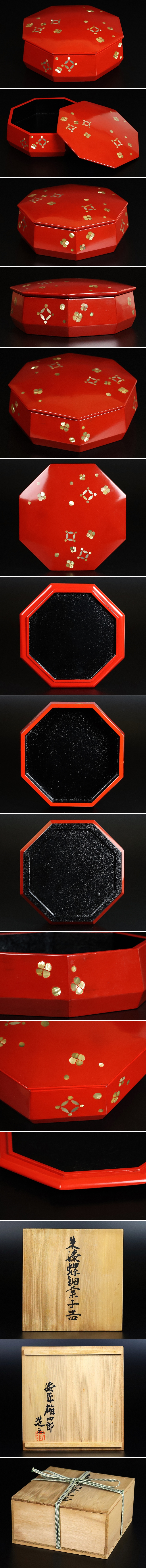 【 小島雄四郎 】秀逸作 朱漆螺鈿菓子器 師 黒田辰秋 共箱 保証