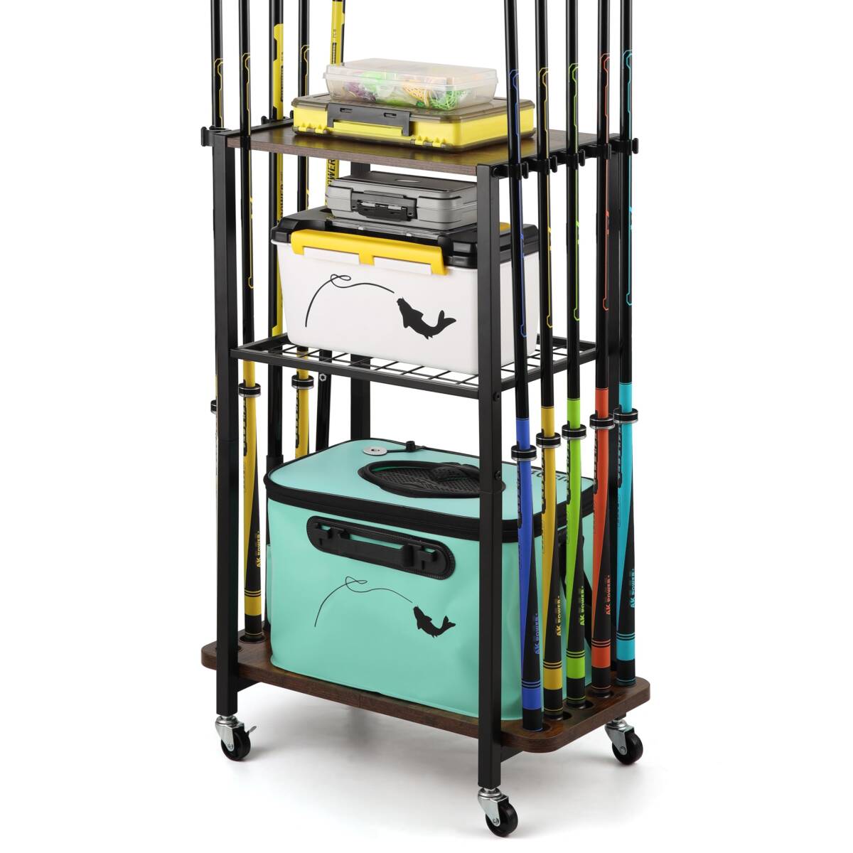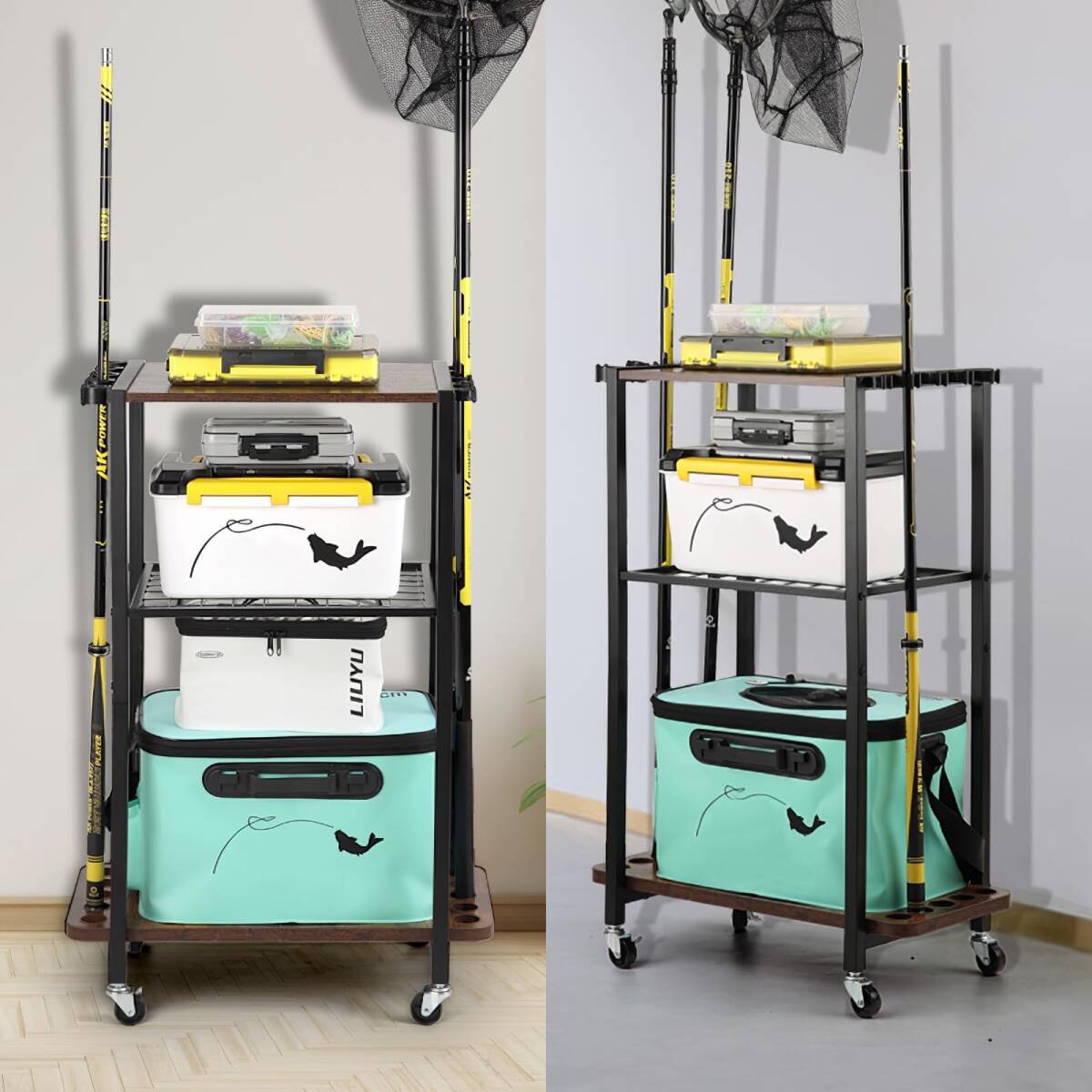 ?【釣り具 3段収納ラック】MASTLU ロッドスタンド 3段の収納ラックが付属しています。釣り具ボックス、スピニングリール リール、釣り具アクセサリー、小物 セット 海釣り道具、その他の釣り用品を保管できます。