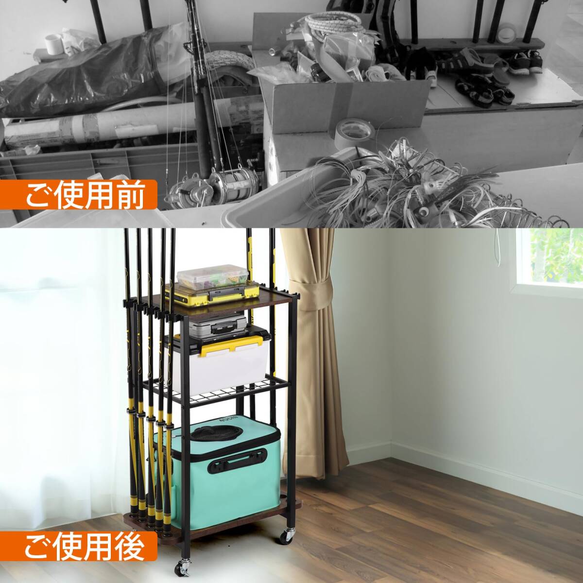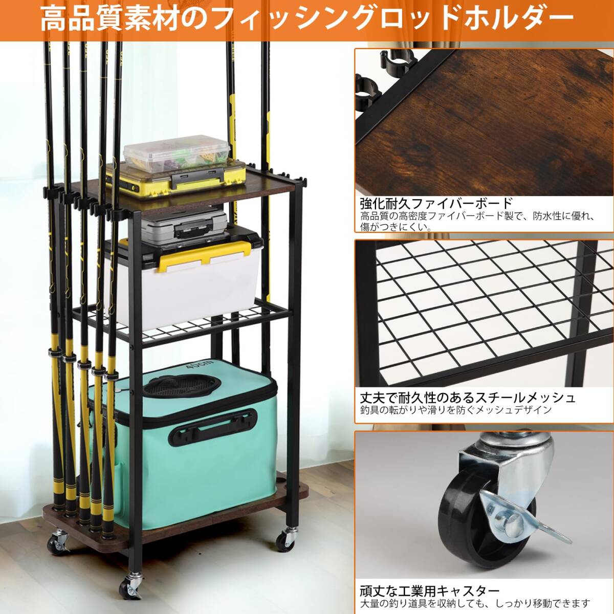 ?【出し入れが楽で便利】立てたまま収納できるスタンド式です、加工されており、釣竿に負担をかけず簡単に取り出せます。移動に便利なキャスター付き!安定感だけでなく、高級感もあり、余裕があり使い勝手も。 自慢の釣竿をお店のディスプレイのように美しく収納できる釣竿収納ラックです。釣りが好きな方におすすめ!