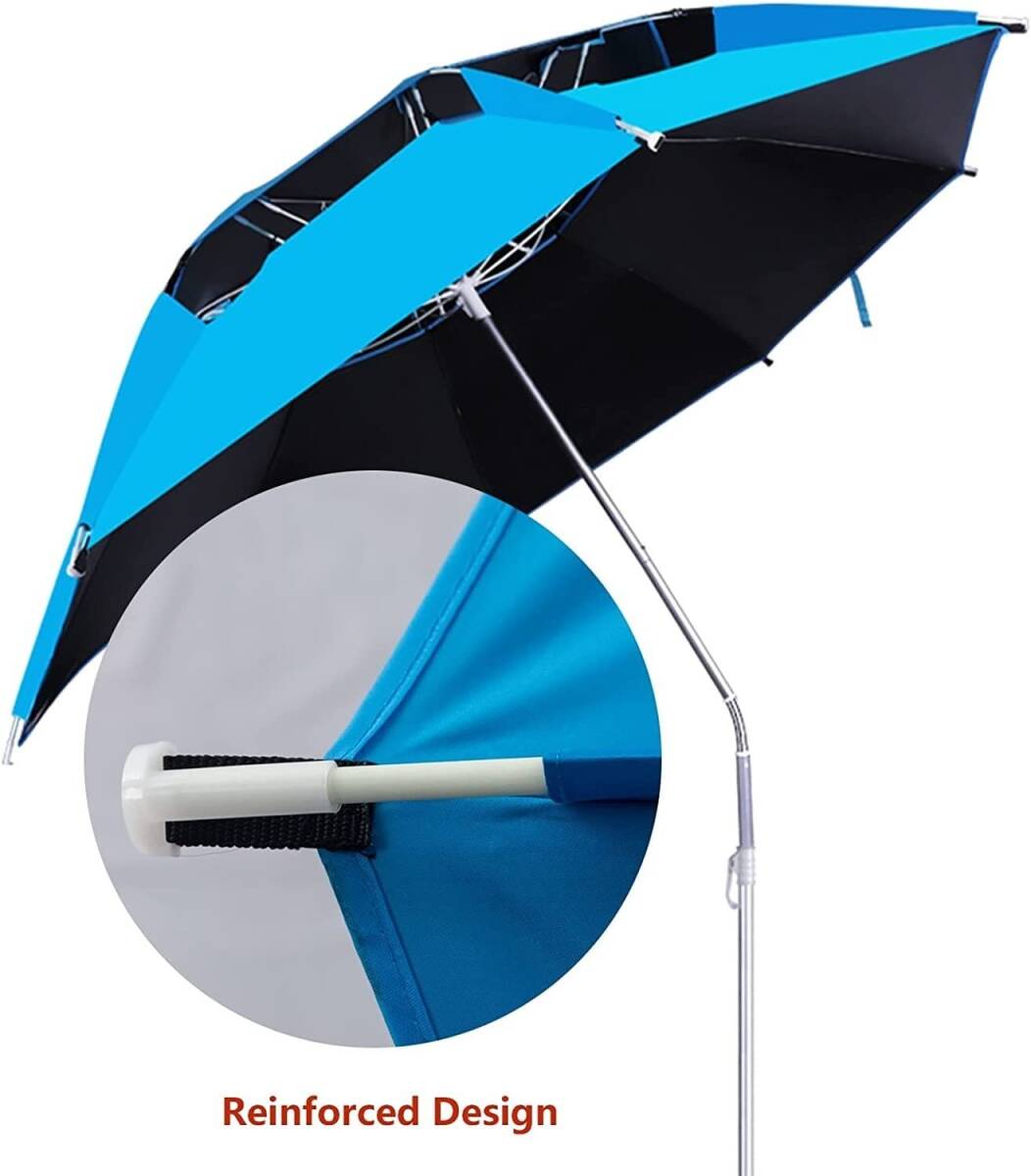 360°回転:太字のスプリングデザイン、360°の全面的な調整、太陽が動く限り、釣りの傘の方向を調整できます。 360°日焼け止め