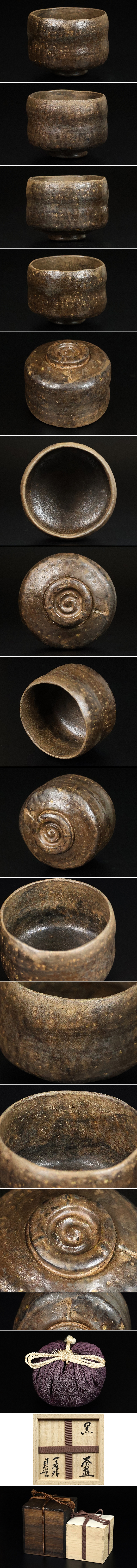 一見してお分かりの通り、楽家初代・長次郎の黒楽を手本としながらも、独自の研鑽による表現と技量が存分に表れた作品。