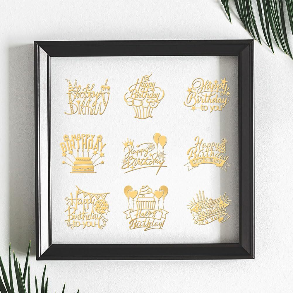 誕生日のテーマ:9種類の「happy birthday」文字が含まれています。各スタイル1枚入り。ステッカーサイズ:4*4cm。 様々なデザインは、あなたのクラフトのニーズを満たすのに十分です。