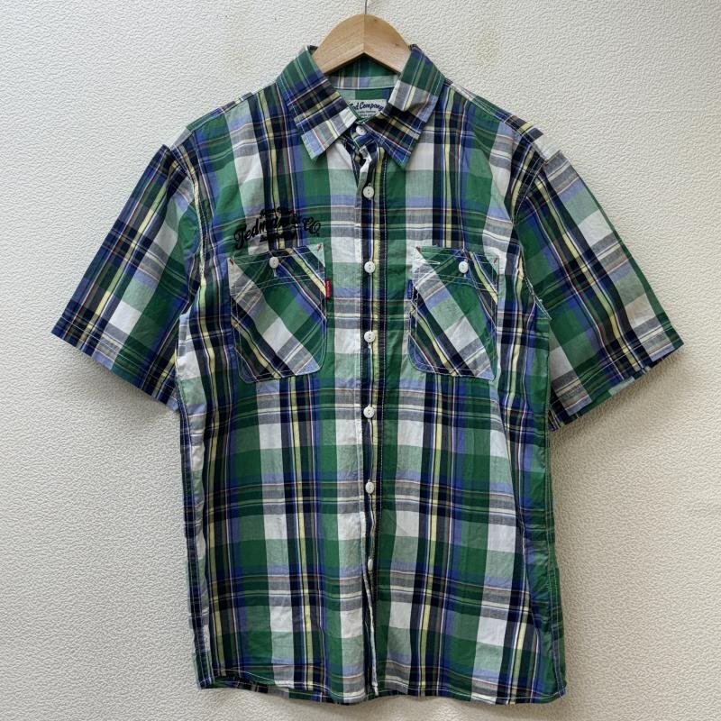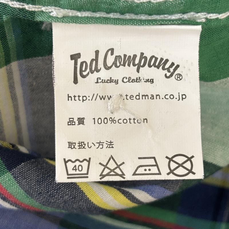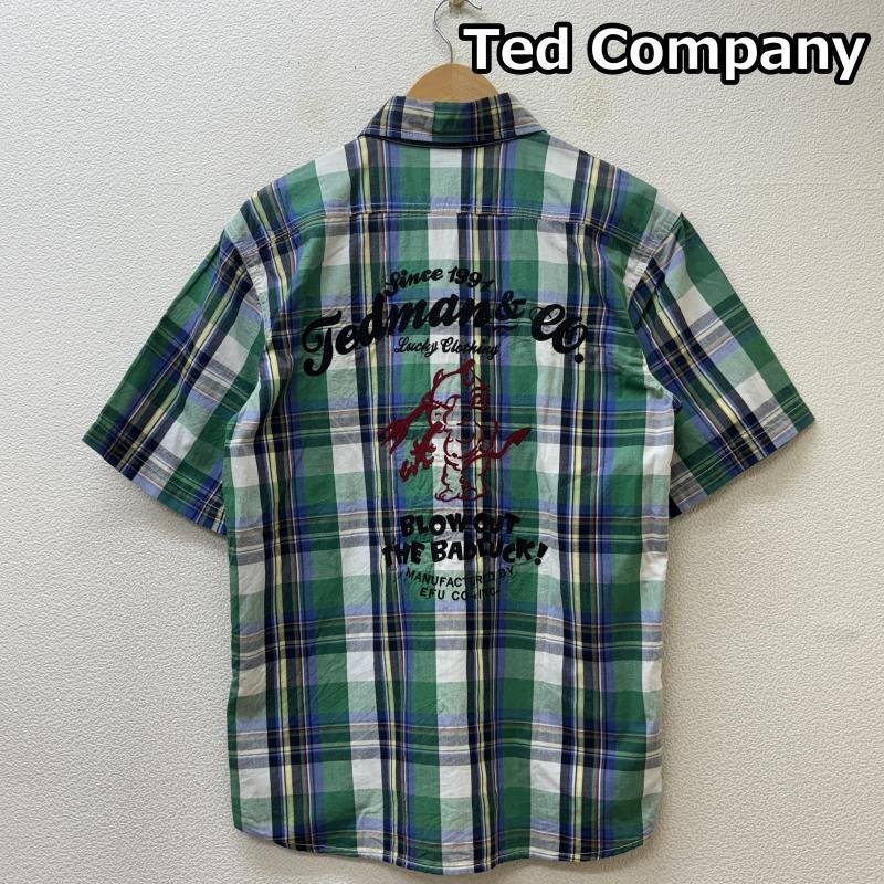 テッドマン Ted Company ラッキーデビル ロゴ チェーンステッチ刺繍 チェック柄 猫目ボタン 半袖 ワーク シャツ M