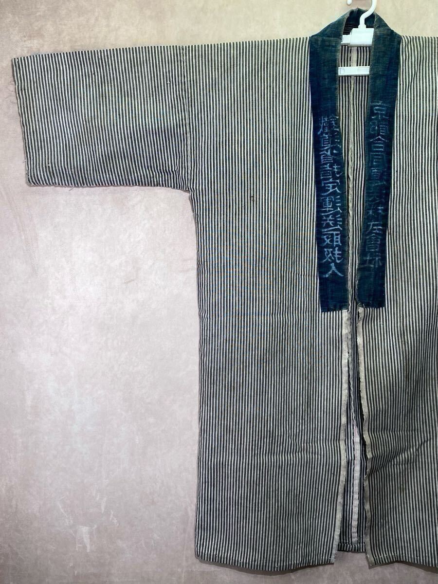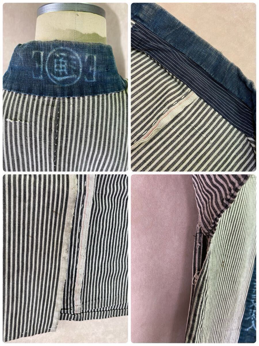 現代風にいうと、ヒッコリーとデニムのワークジャケット。ヒッコリーは耳付き。襟下にはウォバッシュのような生地が付いています。なんとも、非常に面白い逸品。