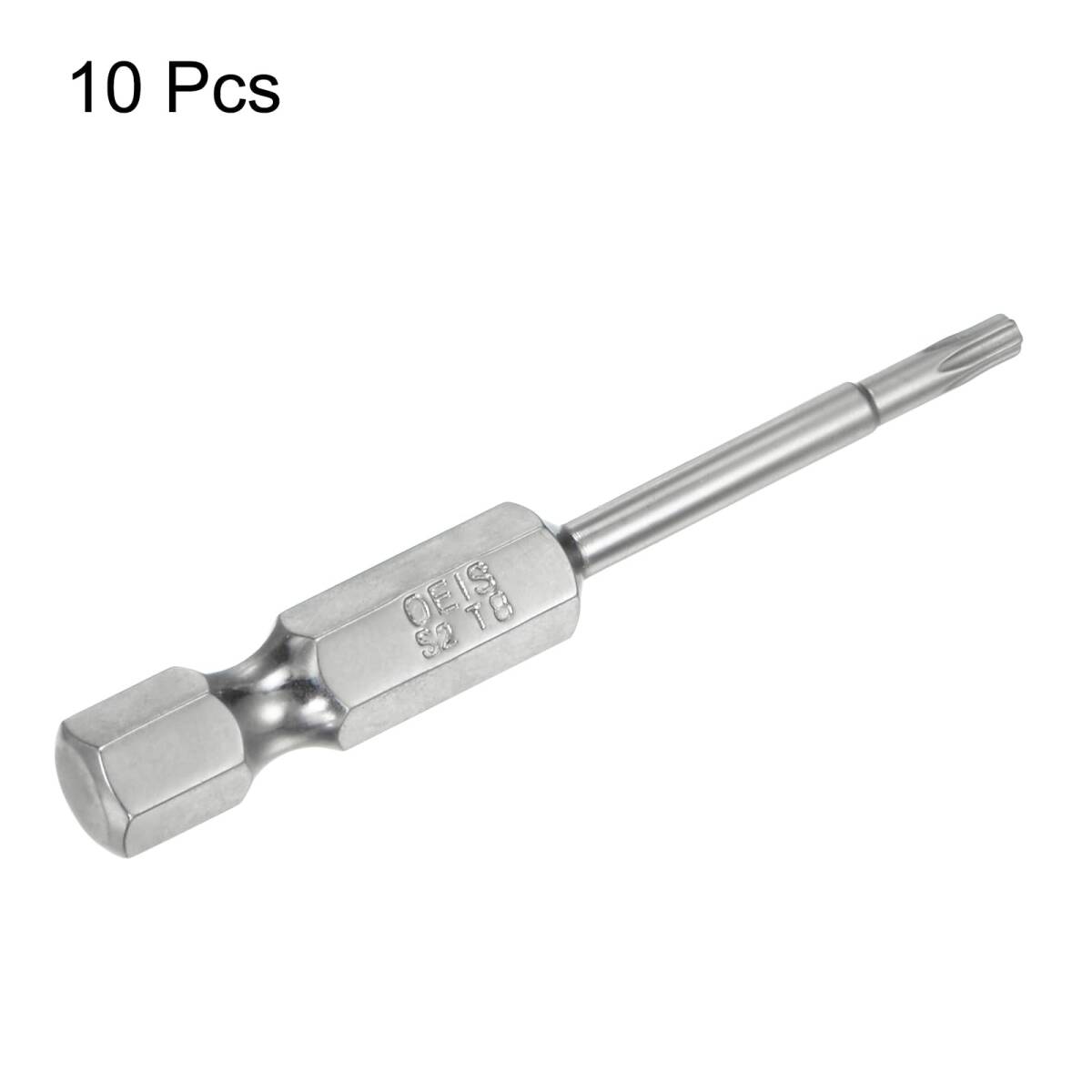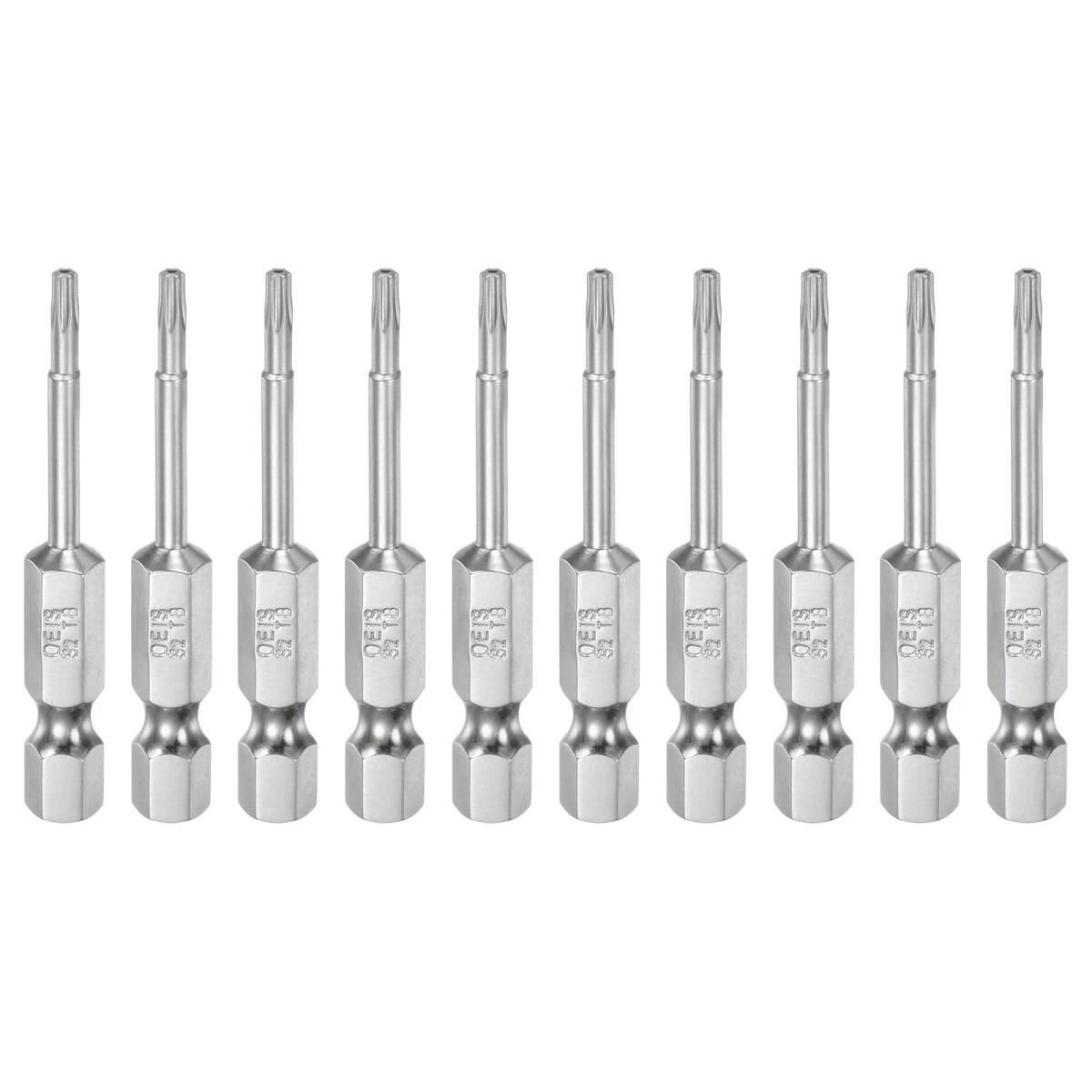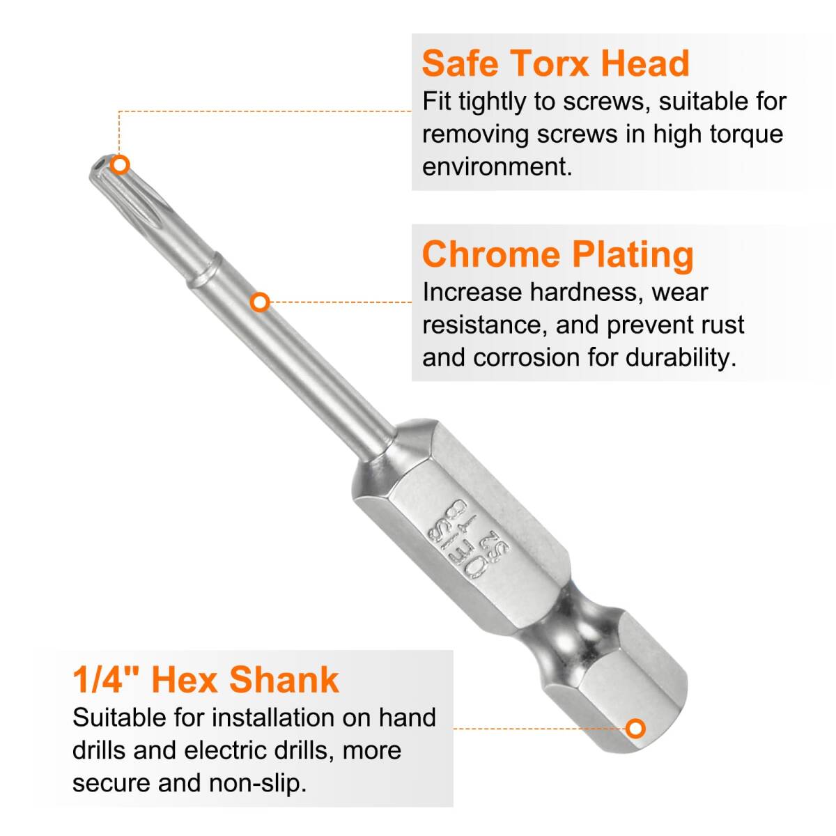 サイズ - 防盗トルクスビットサイズ:T8、六角シャンクサイズ:1/4"、全長:50mm / 2"、硬度:HRC58-60、スタイル:ホール付きトルクスヘッド。各六角スクリュードライバービットにはサイズ番号が明確に刻印されており、簡単に識別できます。プラスチックボックス付きで簡単に収納できます。