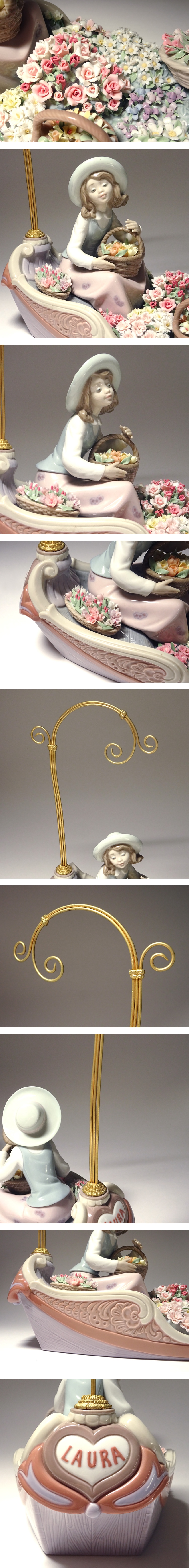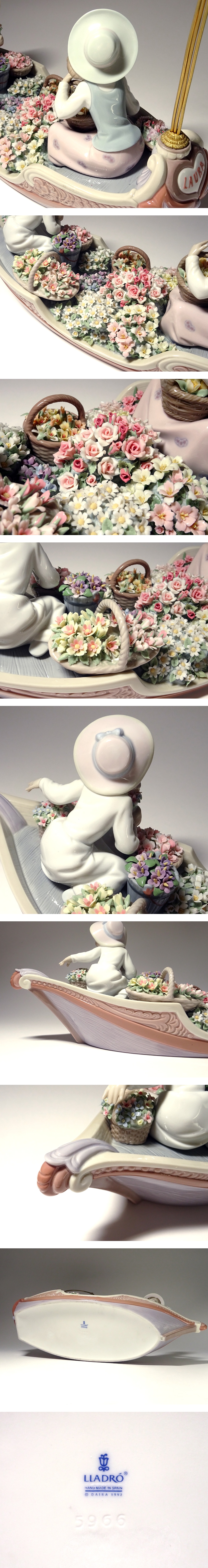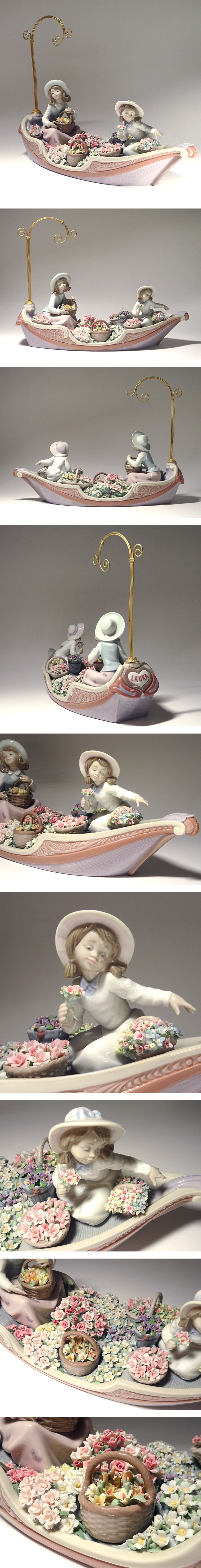 その繊細さと美しさで知られるリヤドロの小花をふんだんに装飾したボートに、2人の可愛らしいお花屋さんを表現した実に素晴らしい作品です。