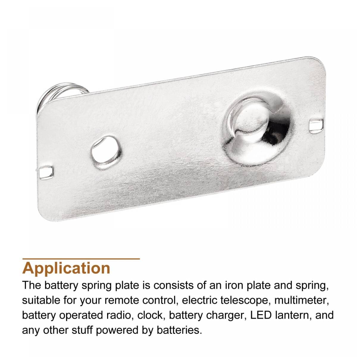 説明これは何ですか。電池のバネ板は鉄板とバネで構成されており、リモコン、電気望遠鏡、マルチメーター、電池式ラジオ、時計、LEDランタン、その他電池で動くものに適しています。何がもらえますか。ここで提供するバッテリースプリングプレートのサイズ: プレートサイズ: 28mm x 12mm x 0.3 mm(L*W*H); カラー: シルバートーンパッケージ内容: 10 x バッテリースプリングプレート製品の利点はありますか。すべてのバッテリープレートは鉄でできており、優れた導電性と優れた電気性能を備えています。何に気付くべきですか。すべてのサイズは手動で測定されます。+/-0.1インチの誤差を許容してください。