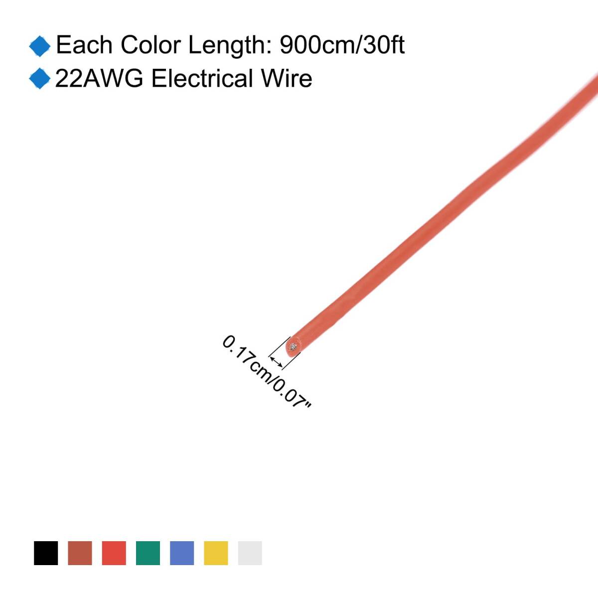 パッケージ内容:1セット x 電気PVCワイヤー;7色:黒、赤、青、緑、黄、白、茶;各色の長さ:9m/30ft;外径:0.17cm/0.07";スタイル:マルチストランド配線の1コア;絶縁材料:PVC;導体材料:ティンメッキ銅;定格電圧:300V;高温耐性:80℃/176?
