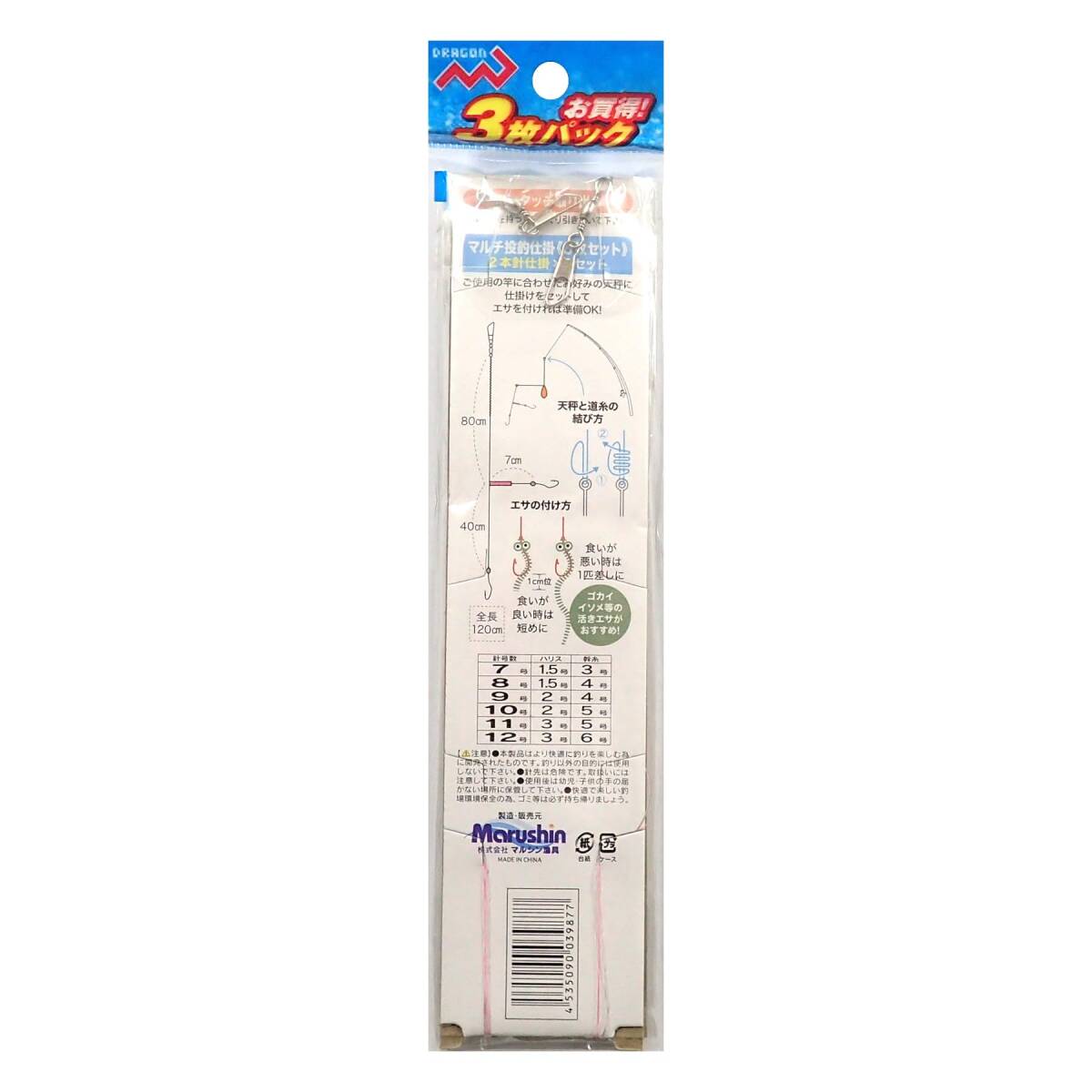 商品名:マルチ投釣仕掛3枚パック 2本針
