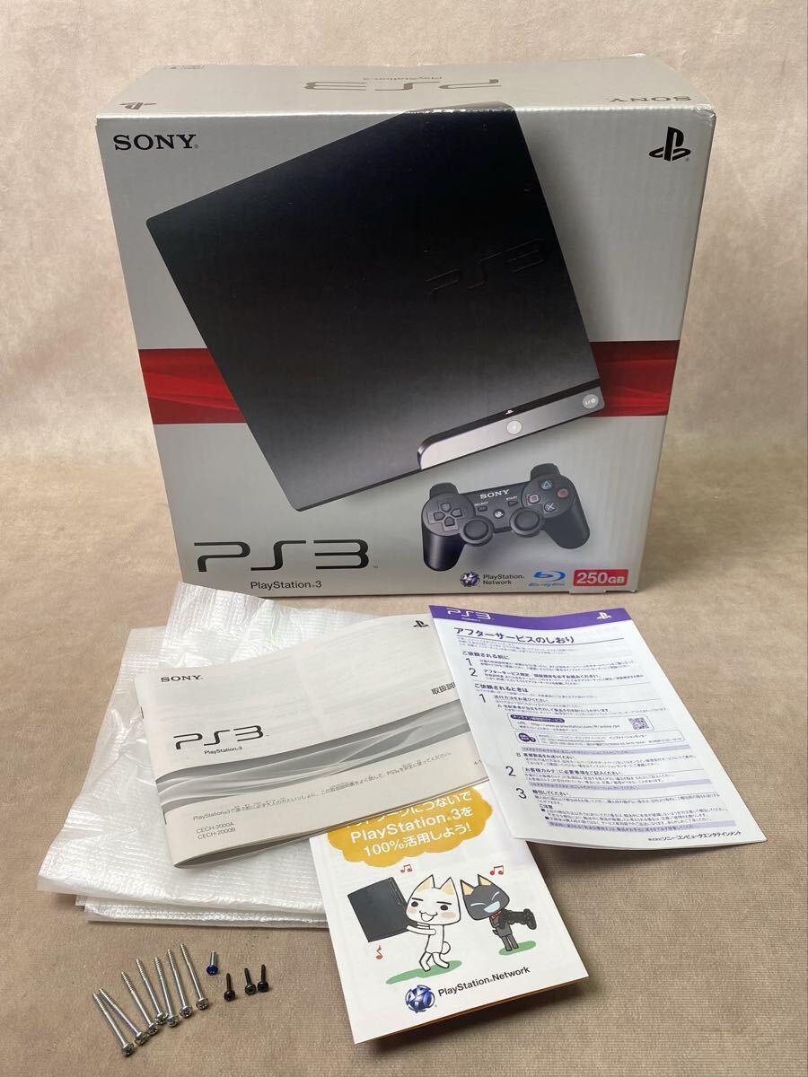 PS3の空箱と説明書等、おそらくコントローラー等のネジのセットです。