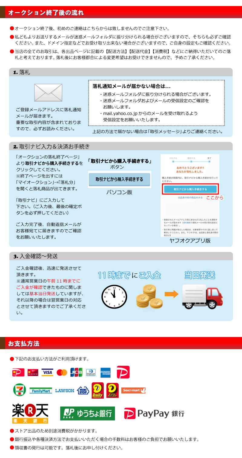 Ⅲ.一旦成功中标,您必须全额支付该拍品(成交价+消费税+银行转账费+日本邮费+代购费)。