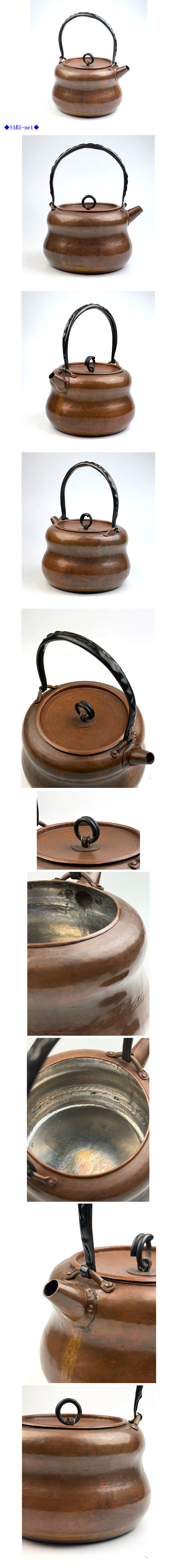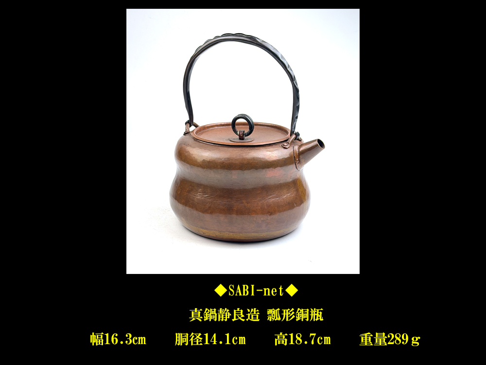 ◆SABI◆ 真鍋 静良 造 銅製 打出 瓢形 湯沸 鉄之手 内銀塗 重量289g ◆ 煎茶 真鍋静光 銅瓶 重餅形 鉄手 打ち出し 北村静香