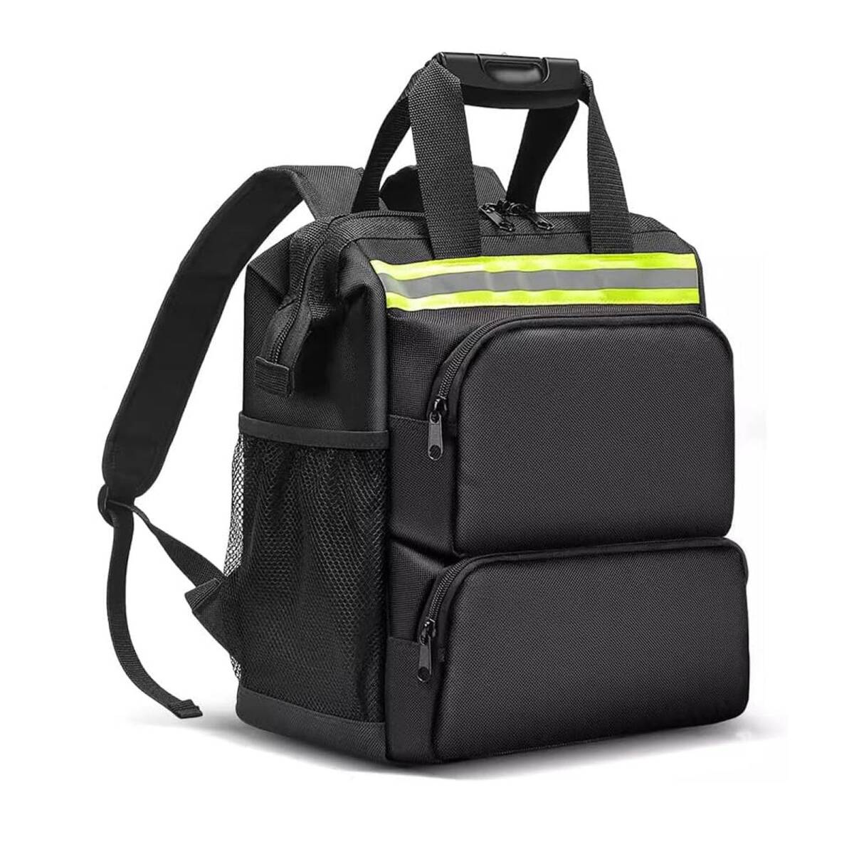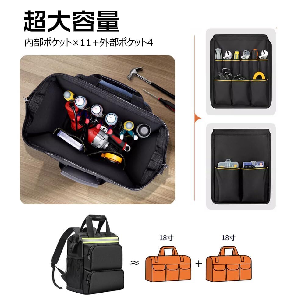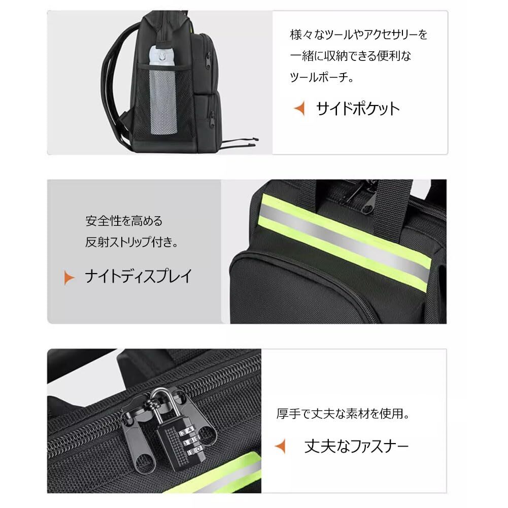 【リュックデザイン】リュックデザインなので、普通のポータブルのツールバックに比べてより楽の背負う体験。より多くな道具が入れる可能です。もちろん普通のリュックバックとして使用可能でバックパネルやショルダーストラップに柔らかなパッドが付いて、通気性が高く、汗などを速やかに吸収でき、使用体験大向上!!