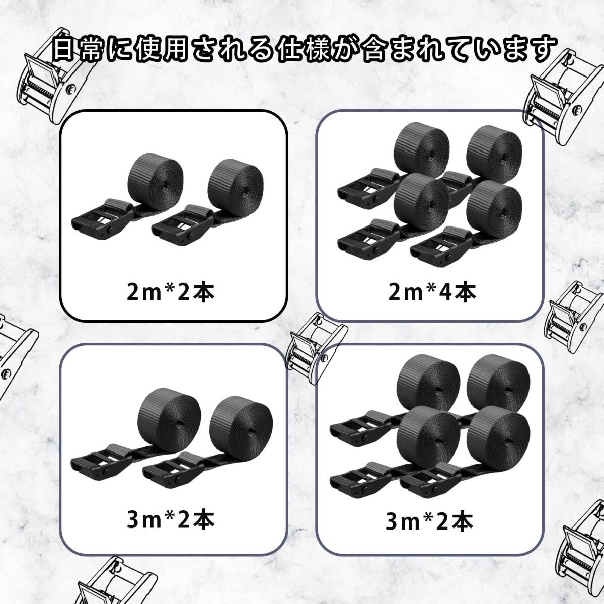 AWELCRAFT 荷締めベルト 3Mx2本 破断200KG 荷物固定 多用途 結束バンド 自動車ベルト バイクベルト 地震対策グッズ タイダウンベルト ラッシングベルト Lashing Strap