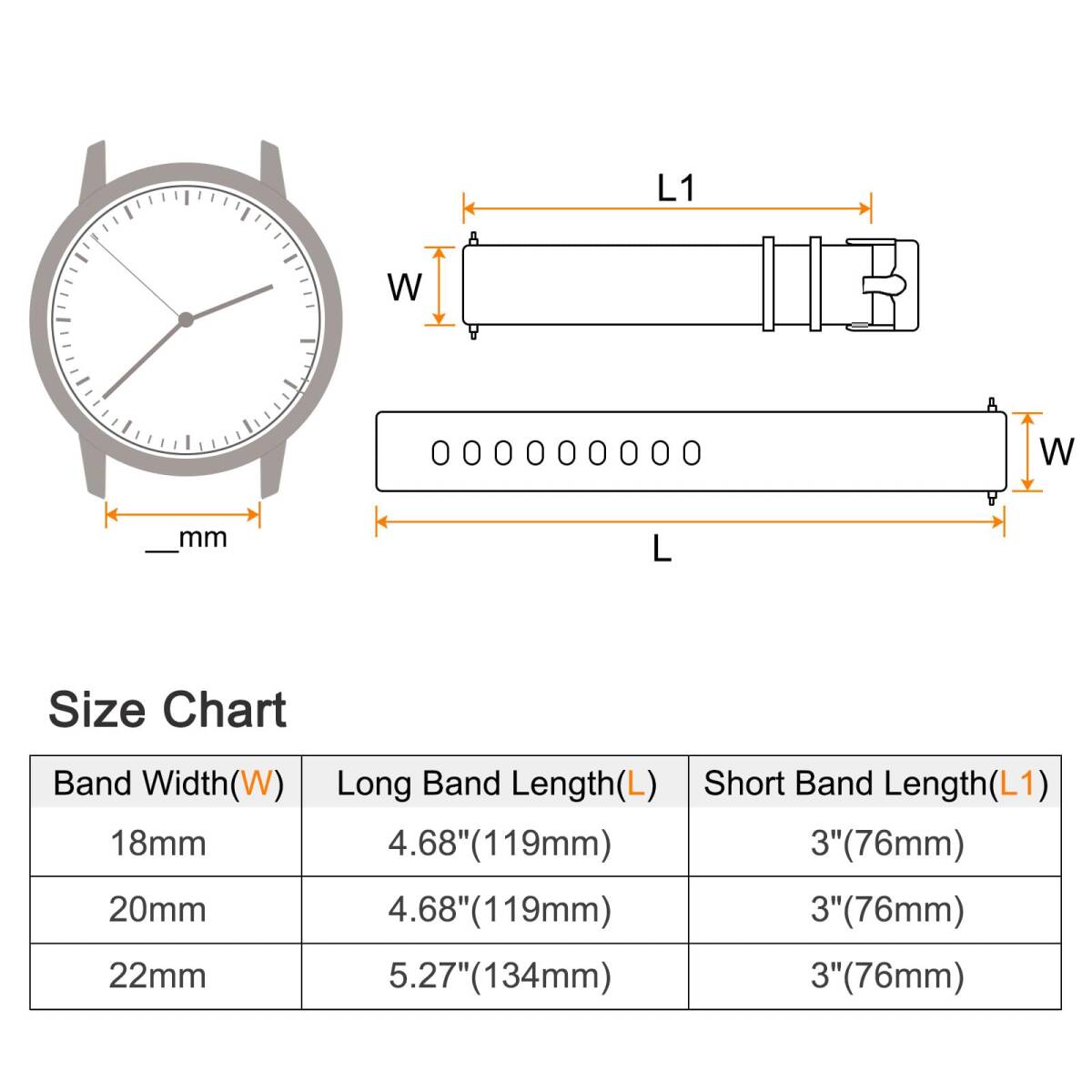 サイズ - 18mmの幅のウォッチラグに適合します。バンドの長さ:3インチ(76mm)と4.68インチ(119mm)