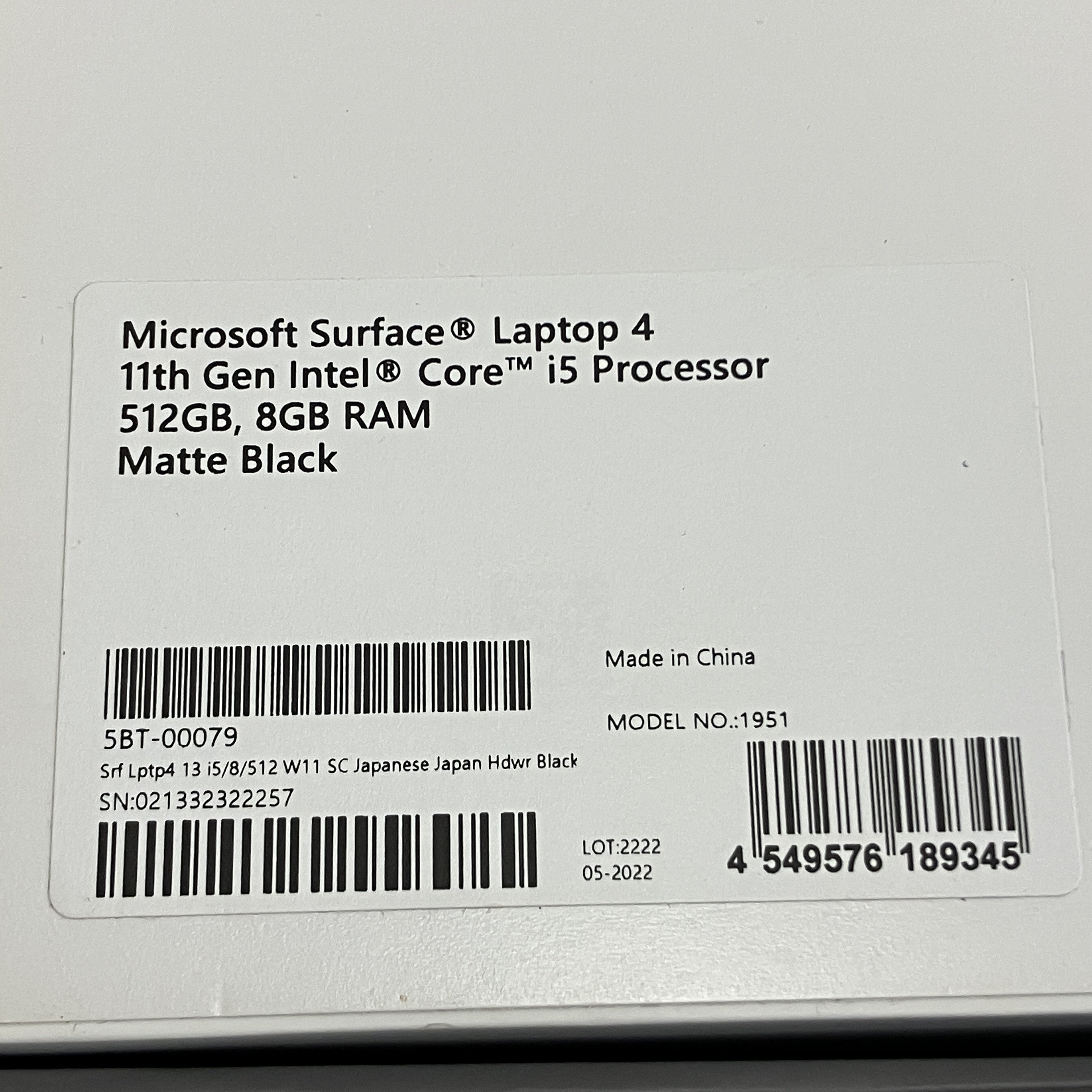 | メーカー名 | Microsoft Corporation | 型番 | Surface Laptop 4 |