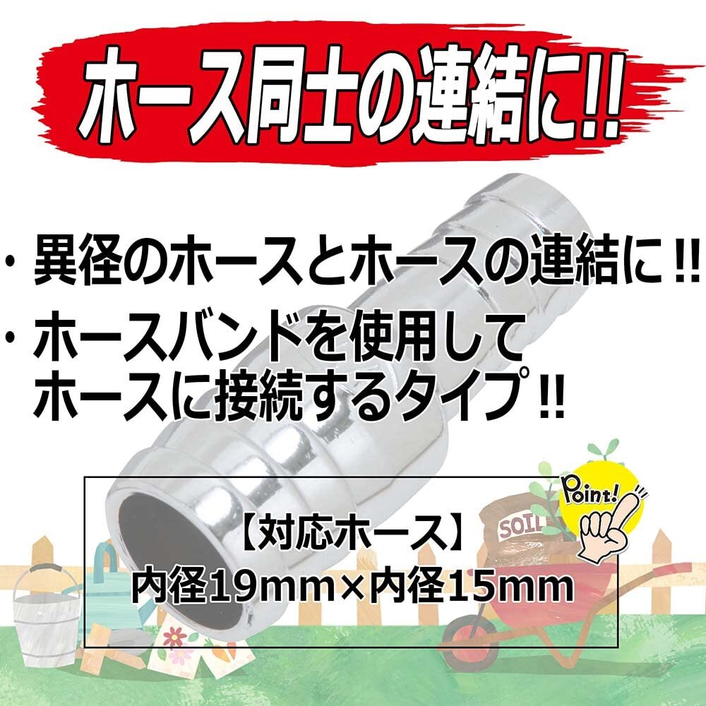 ホースと異径ホースの接続の際に使用【用途】ポンプパーツ【特徴】・ホースバンドを使用してホースに接続・異径ホースの接続ができる