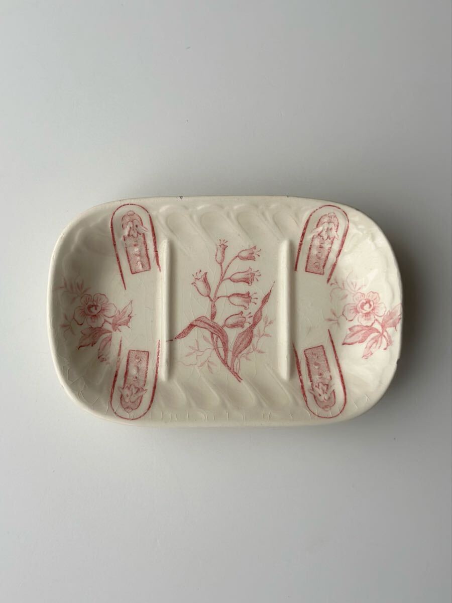 フランス アンティーク Gien ジアン / 鈴蘭のソープディッシュ ピンク すずらん (ソープトレイ 石鹸トレイ ヴィンテージ ブロカント)