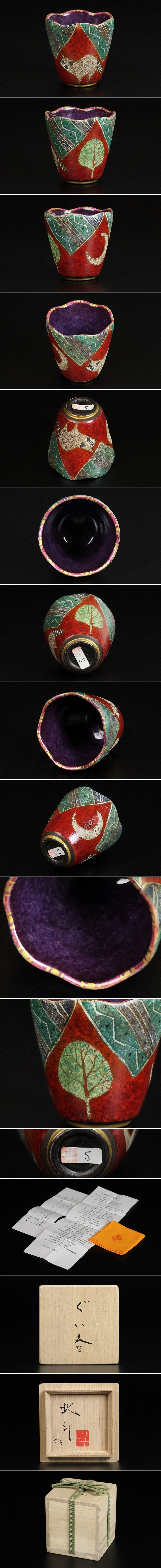 ●美術品(特に陶芸作品)の性質上経年の擦れ、極小キズ、釉薬のくもり、窯疵からの水の漏れ、匂い、高台のカタツキ、ピンホール、貫入、作家による補色、漏れ止めなど有る場合が御座います。