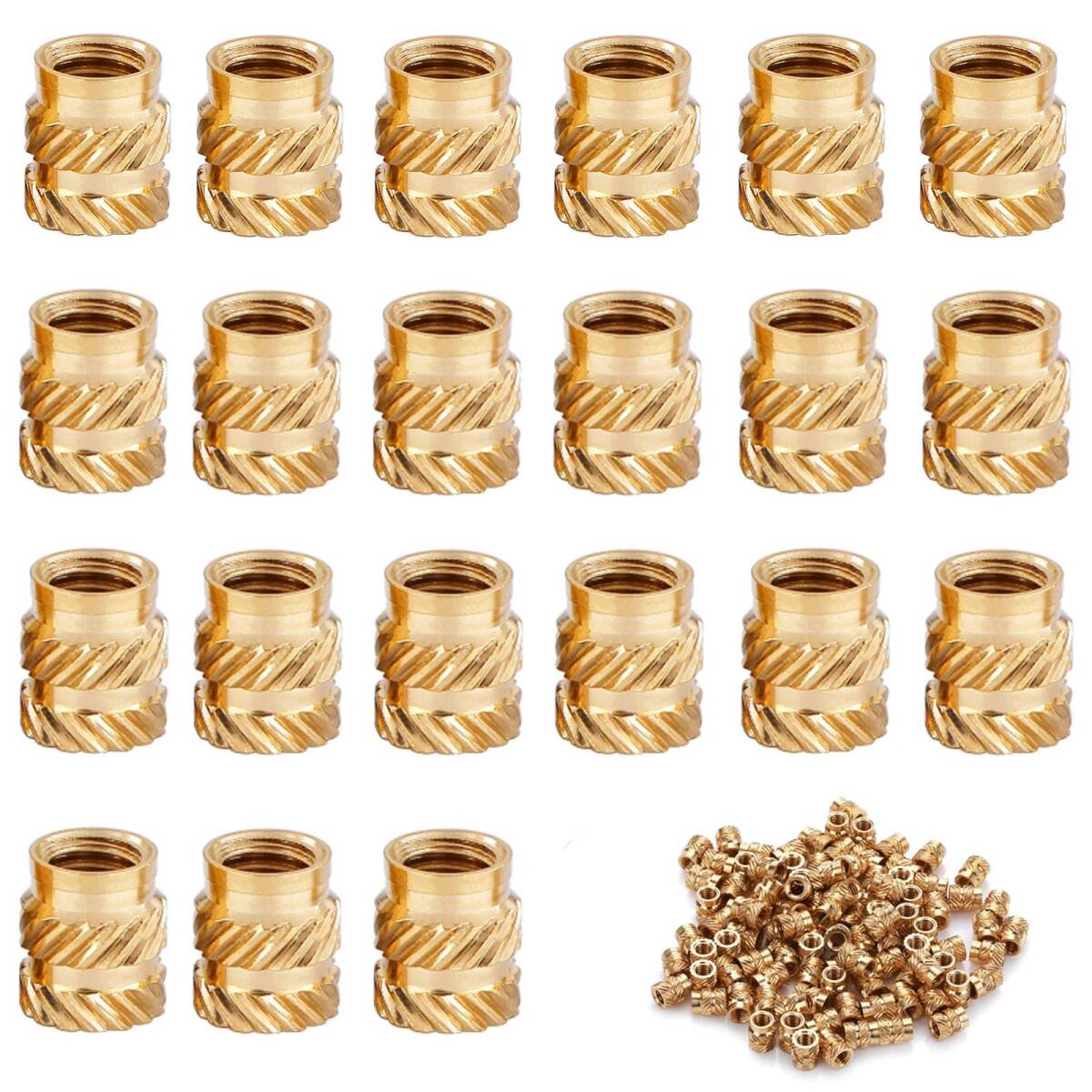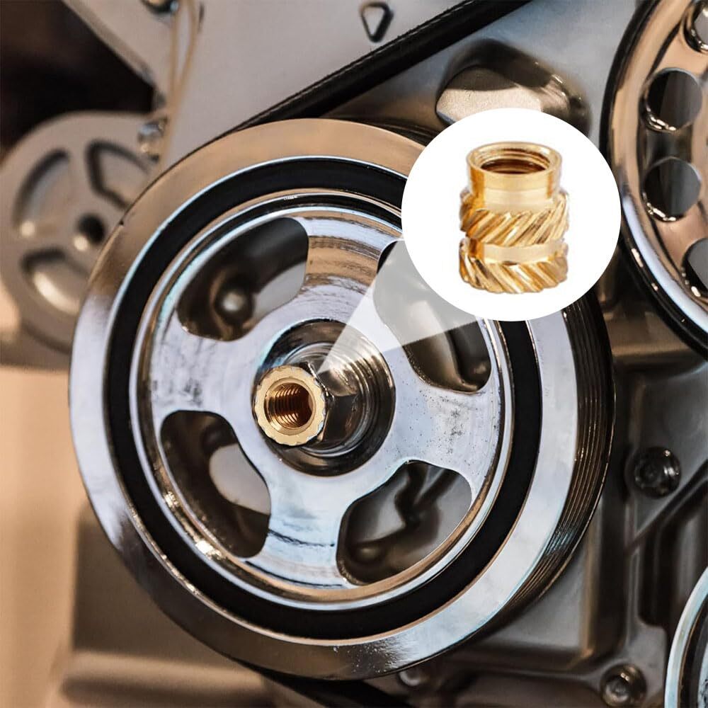 【耐久性のある素材】丸型インサートナットは環境に優しい真鍮製で、耐食性があり、湿気の多い環境で使用しても錆びにくいです。屋内外で使用してもナットが強く割れにくく、長期間安定した性能を維持します。これらのインサート ナットは温度変化に強く、高温にも耐えることができます。また、熱伝導率が良いので作業効率も向上します。